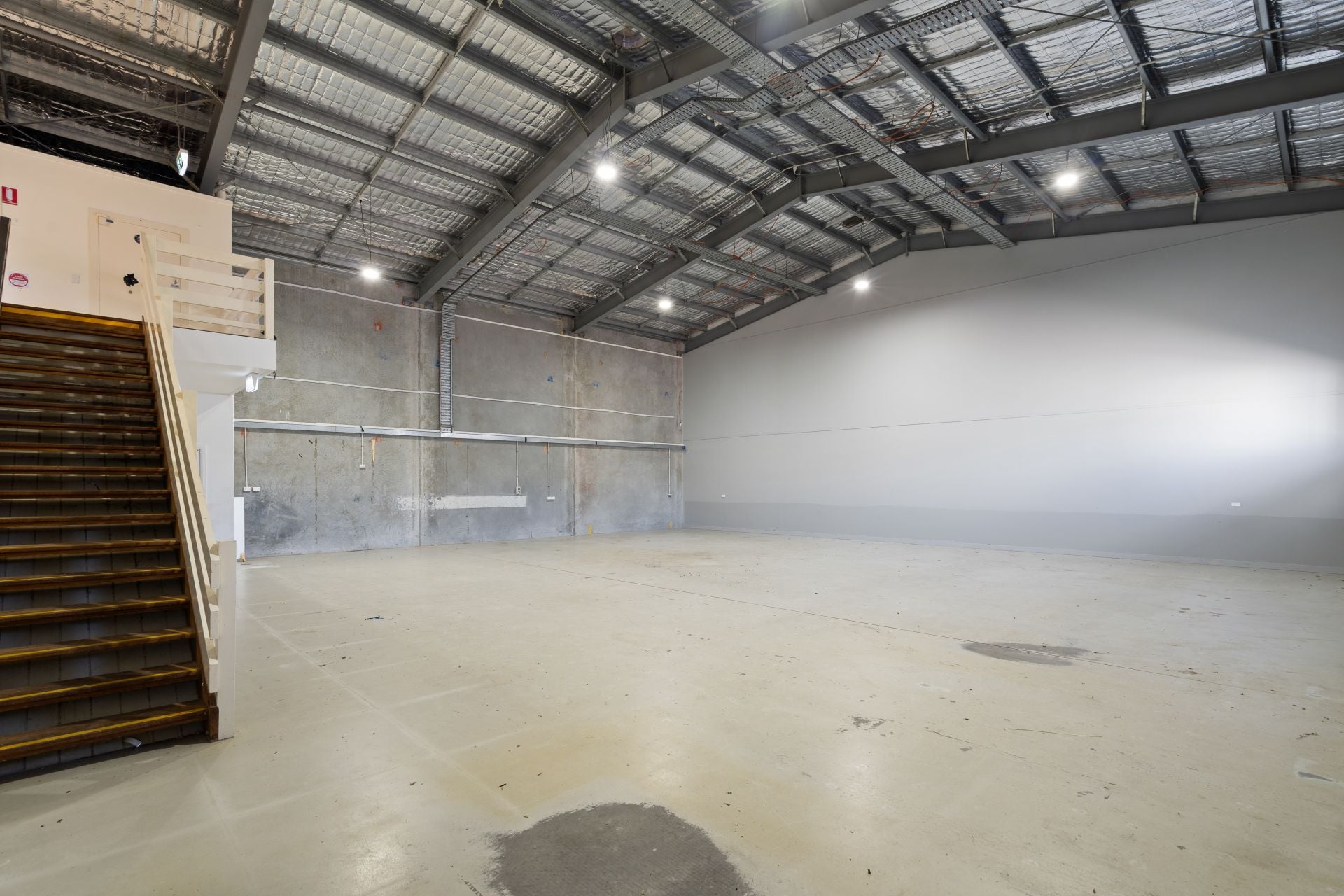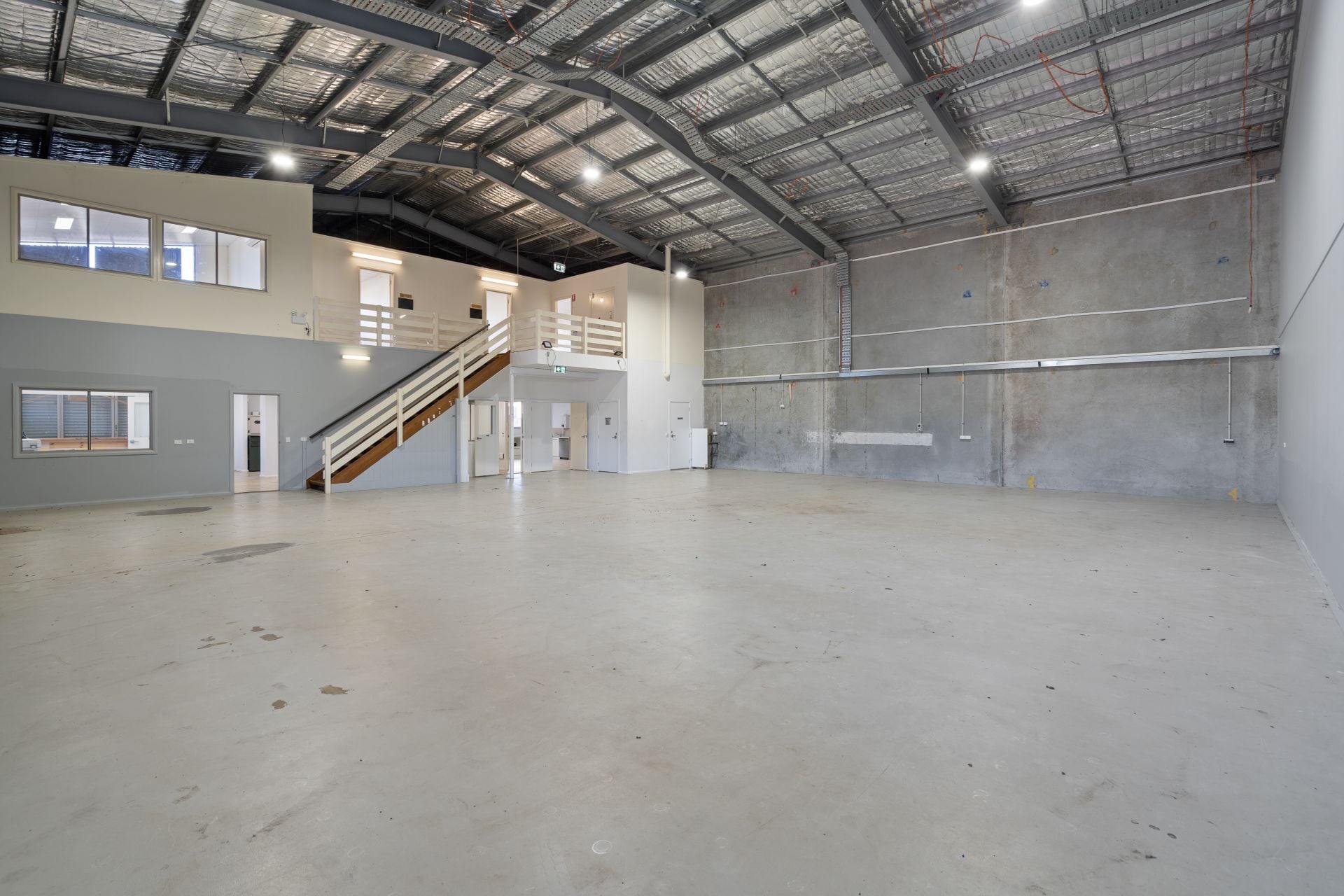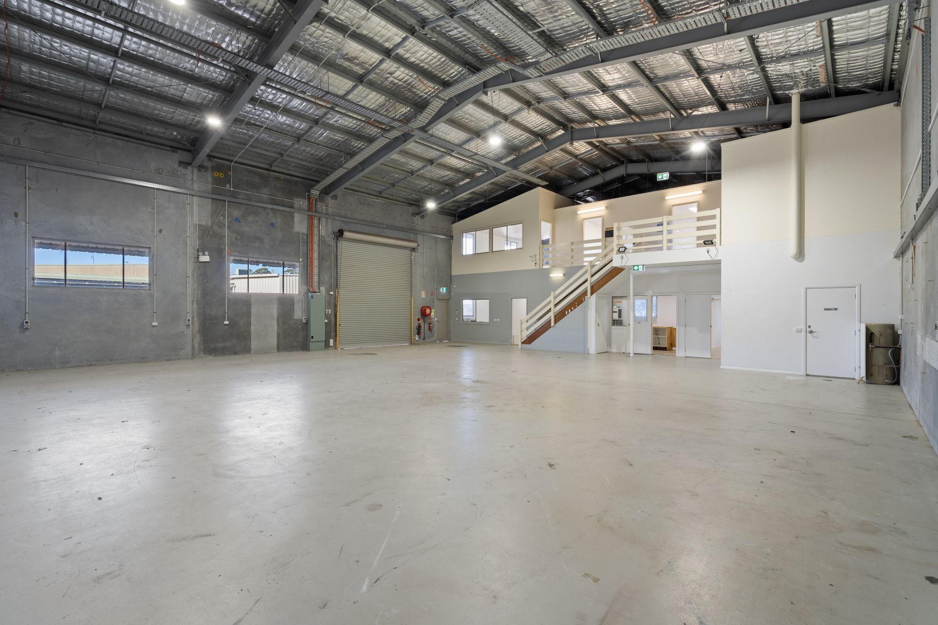 • Expansive open-plan warehouse with two bathrooms on ground level