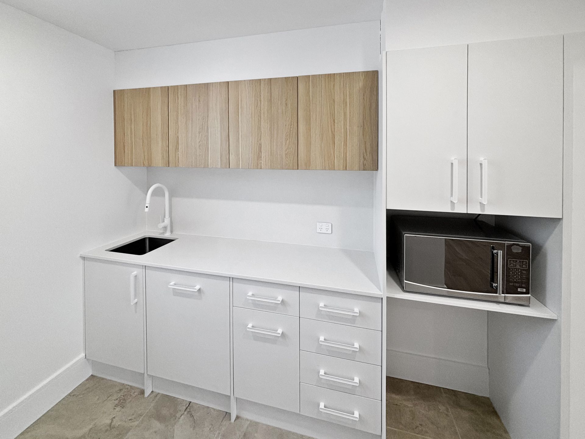Thoughtfully designed for comfort and convenience, the space features a kitchenette complete with Smeg dishwasher and microwave, a fully accessible bathroom, and air conditioning throughout. The layout provides flexibility for a range of service-based businesses, with plenty of room to tailor the fit-out to your specific needs.