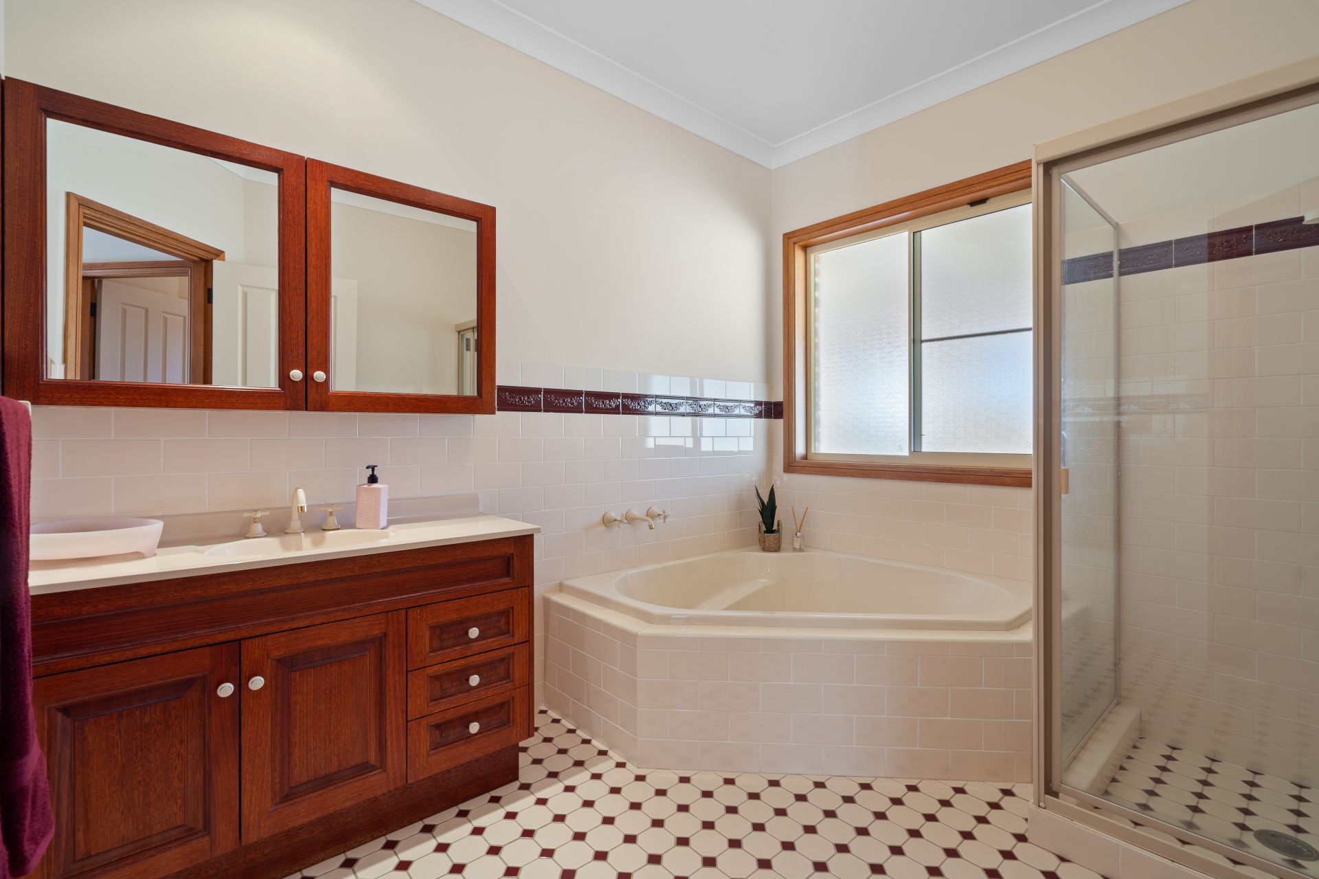 ** Family bathroom with a large corner bath and convenient separate toilet