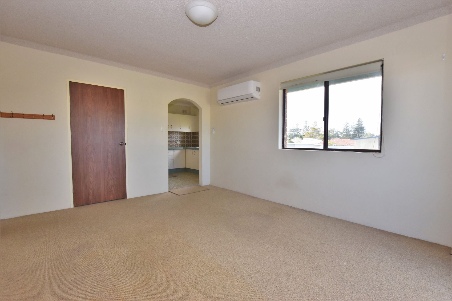 ** Open plan living with A/C, tidy kitchen