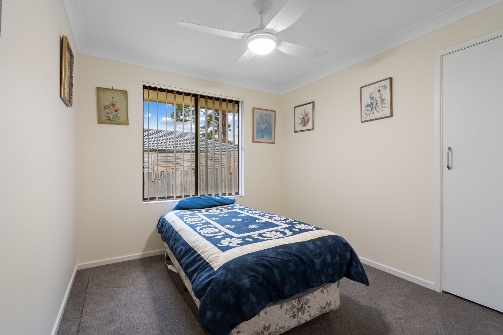 Each of the four bedrooms is fitted with ceiling fans and built-in wardrobes, while the master bedroom is thoughtfully positioned at the front of the home for added privacy. Servicing the home is a neat and spacious family bathroom with a separate toilet for convenience.