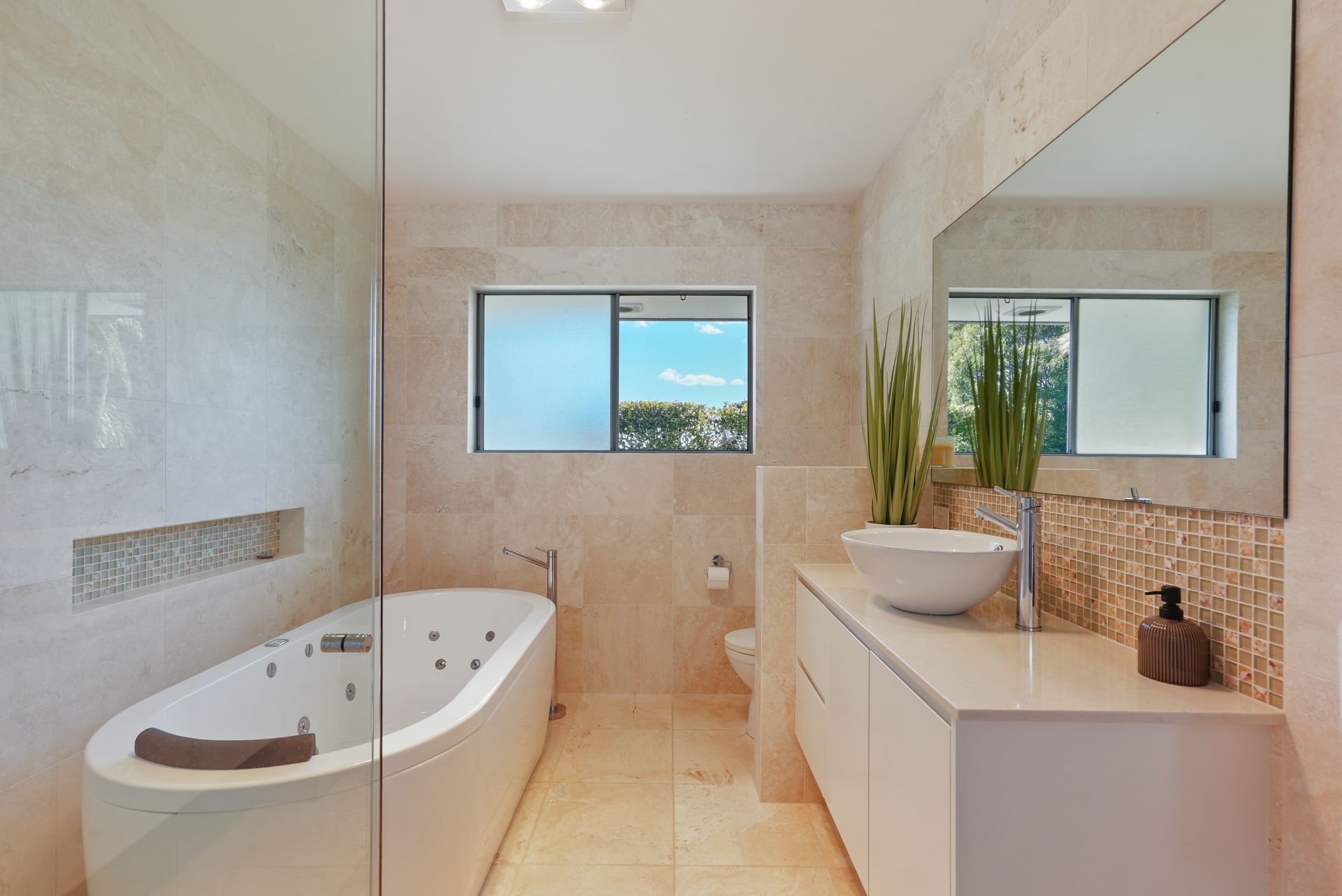 The additional bedrooms, all offer king-sized proportions with built in wardrobes. They are serviced by a modern family bathroom featuring a free-standing spa bath and the same floor to ceiling polished travertine tiles as in the ensuite. For further convenience, there is a third WC located in the properties sizable, internal laundry.