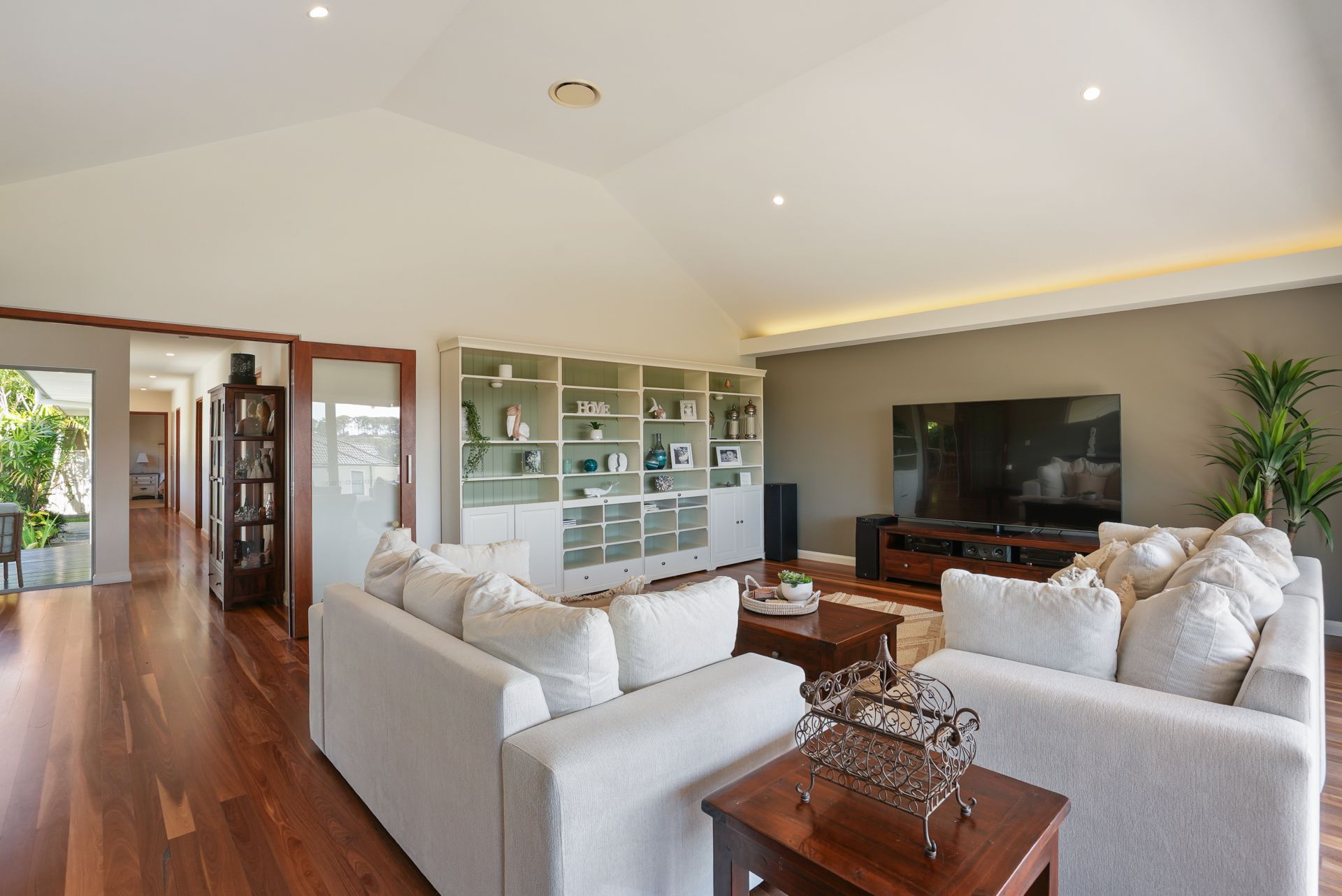 For those seeking separate living spaces, a large lounge room provides an ideal retreat for relaxation and entertainment. To add to the ambiance in the evenings, the living and lounge rooms have the added feature of recessed LED wall lighting.