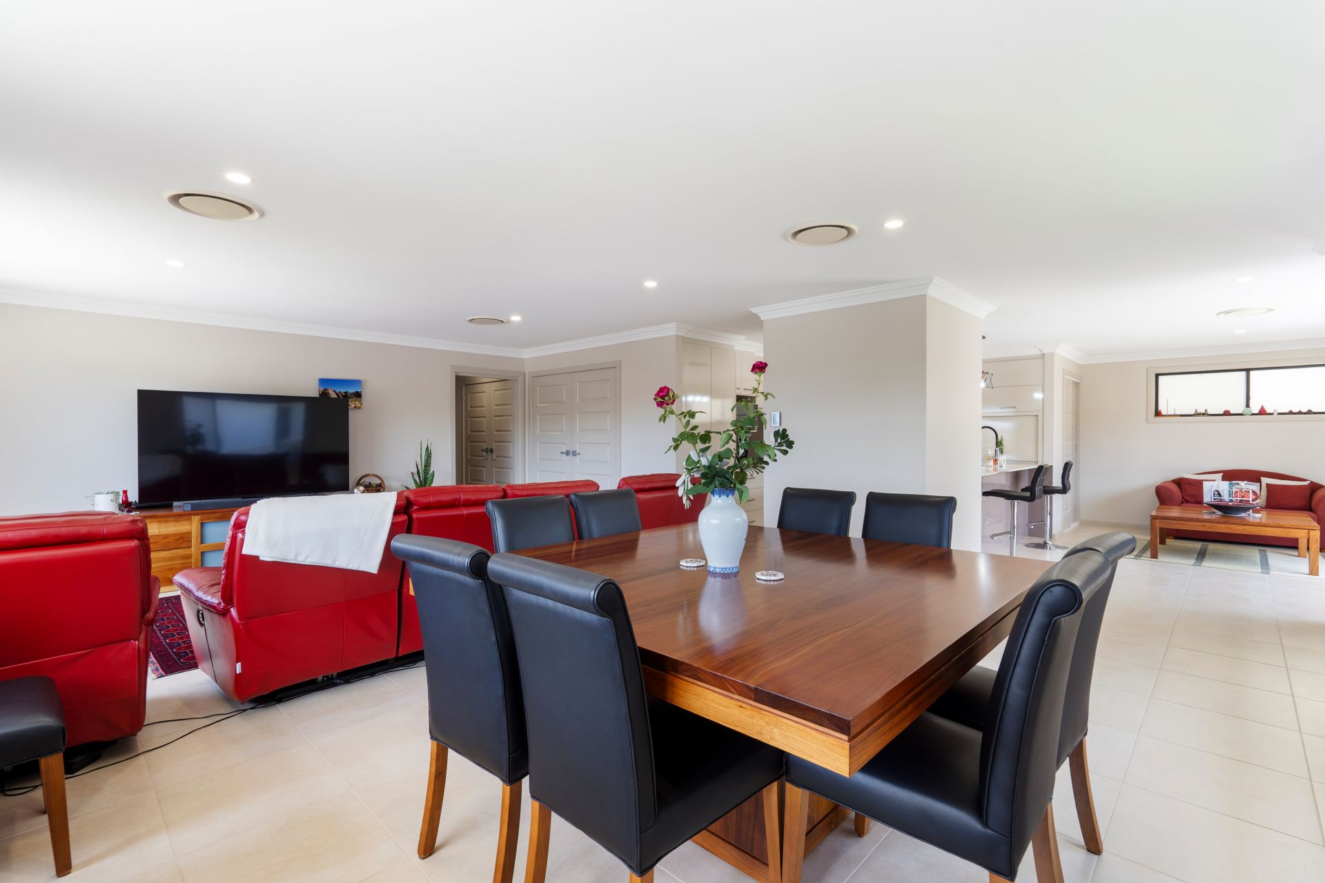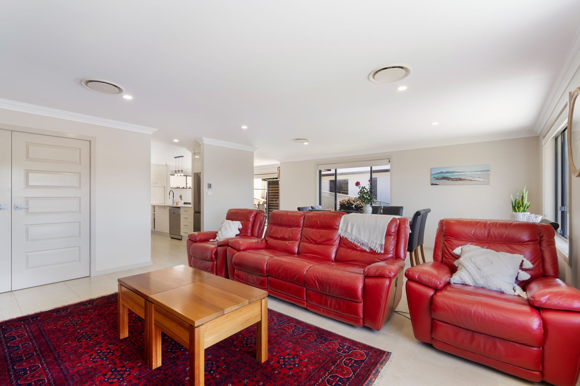 The spacious open plan layout seamlessly connects the lounge, dining and family zones, creating an inviting hub for relaxed living and effortless entertaining. Ducted air conditioning ensures year-round comfort, while an abundance of natural light enhances the home’s bright and airy feel.