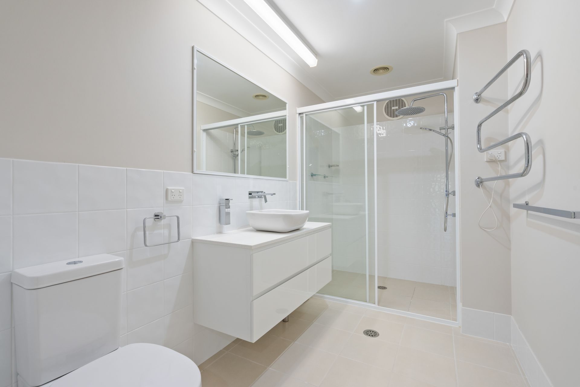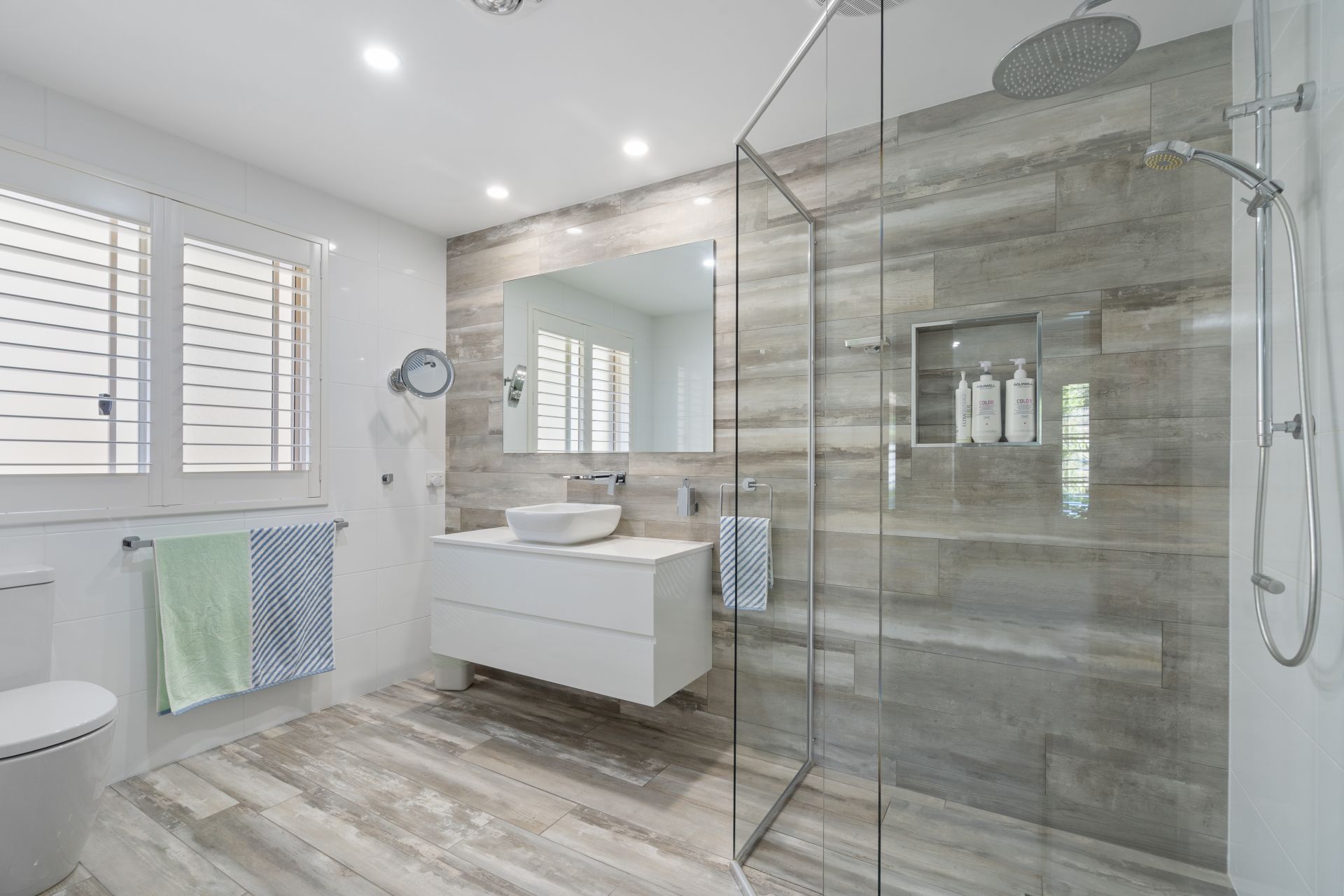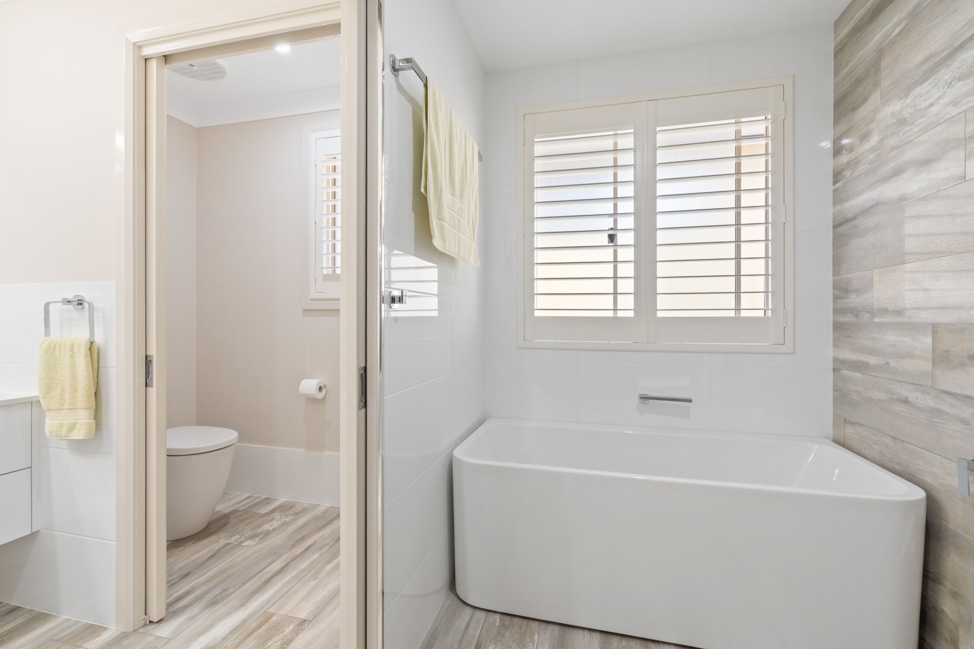 Complete with a walk-in wardrobe and chic ensuite featuring a wall-hung vanity and floor-to-ceiling tiling, it offers a peaceful retreat for parents. The additional bedrooms feature built-in wardrobes and are serviced by a modern three-way family bathroom with double vanity and separate toilet – a clever and highly functional design for busy households.