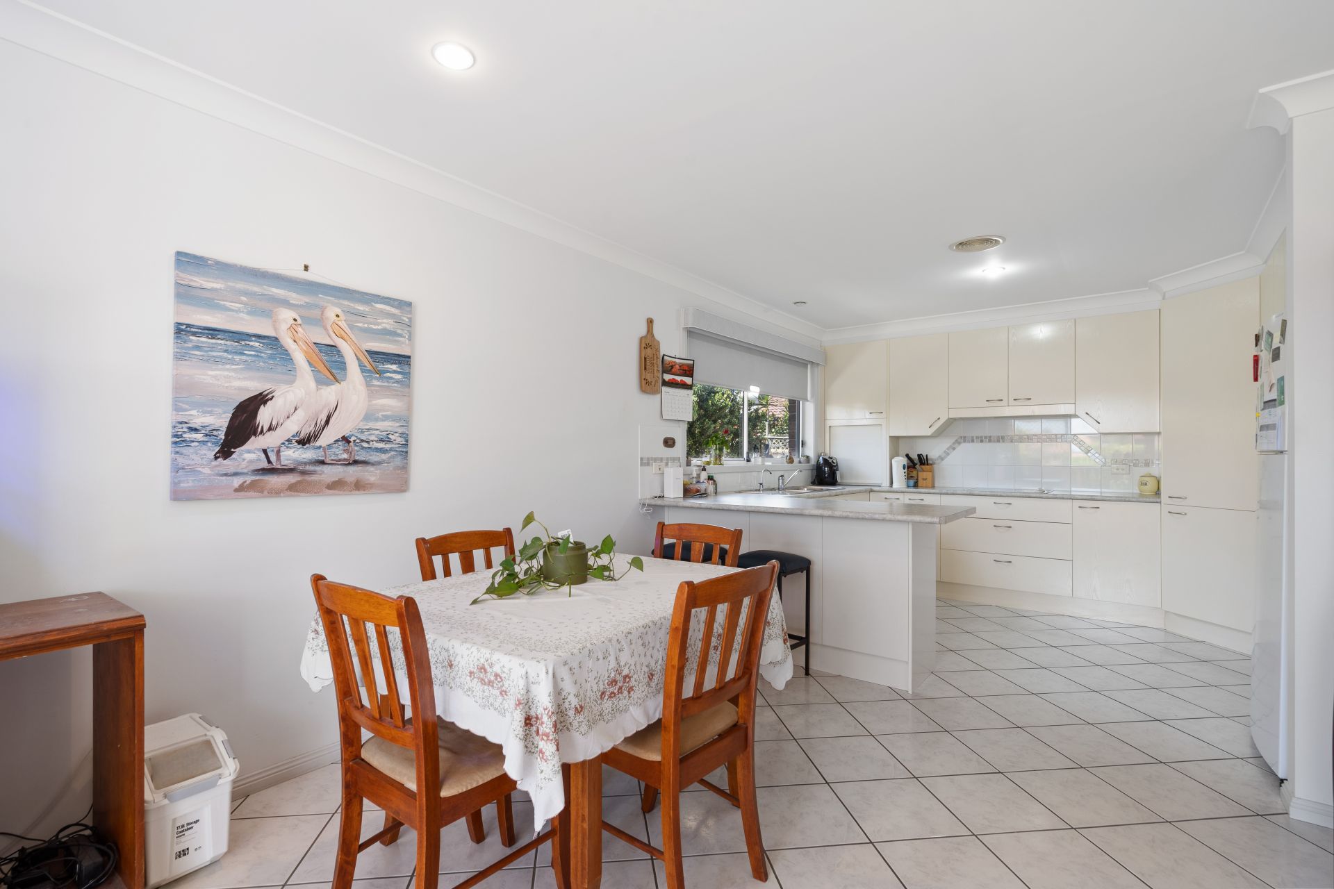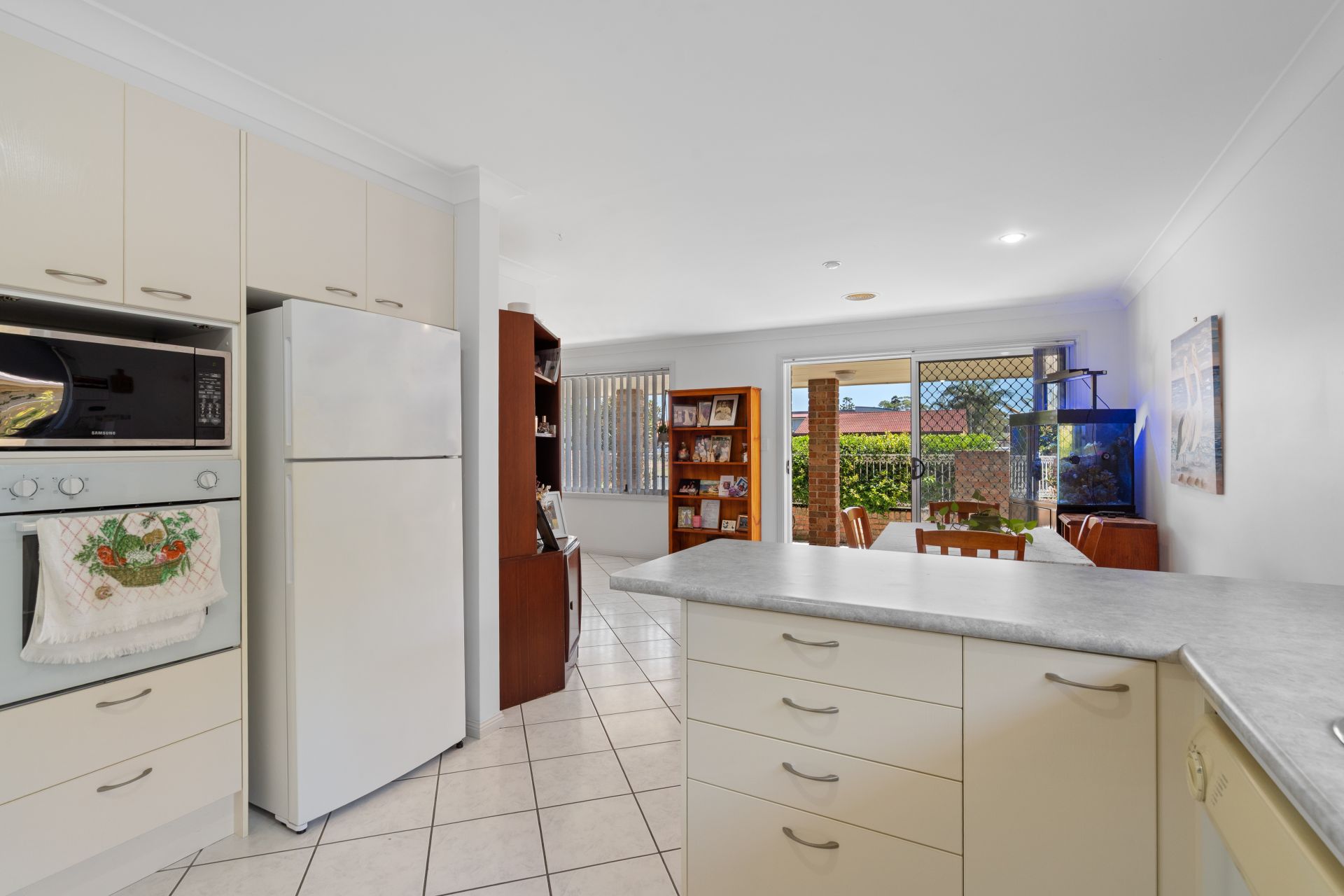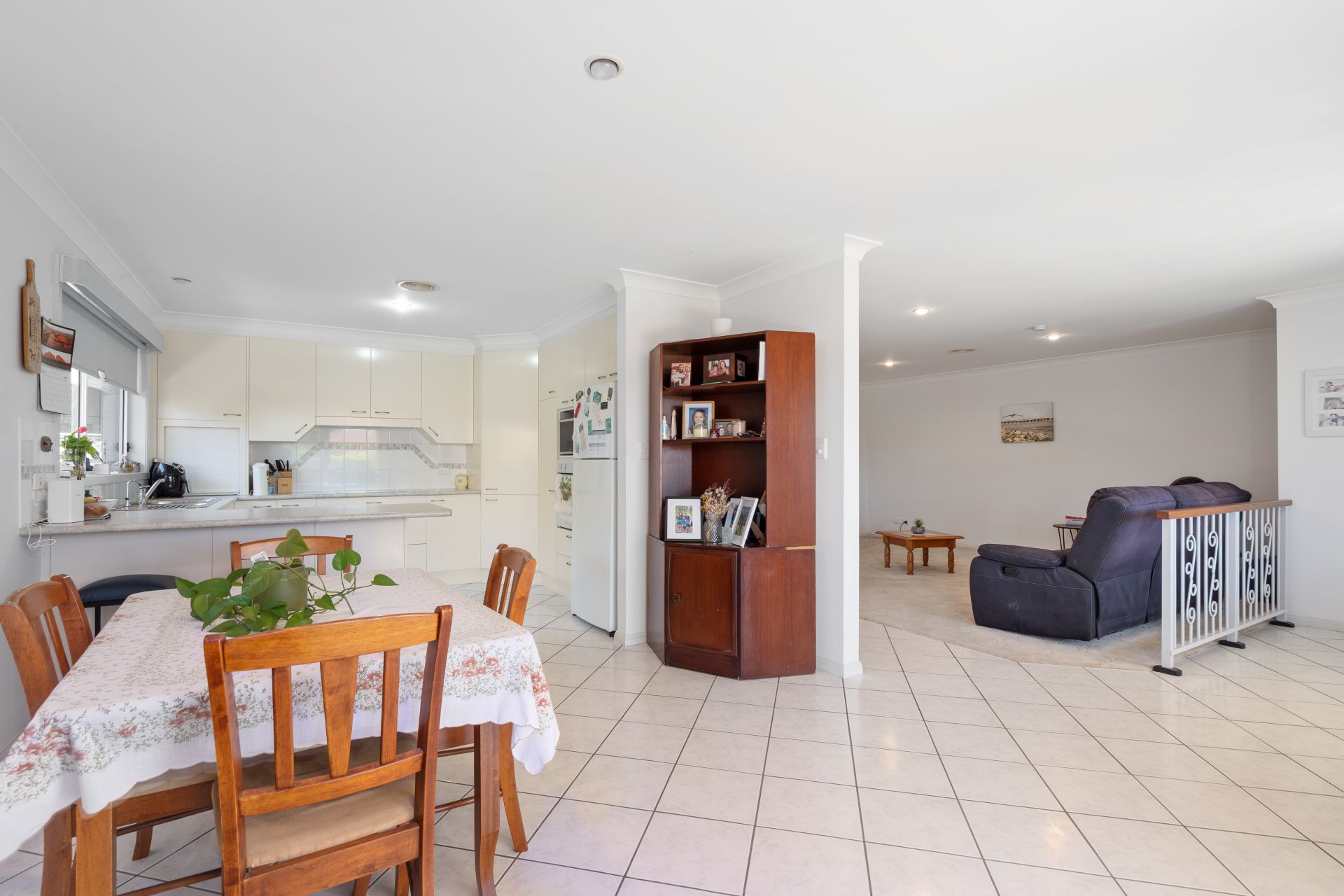 Stepping inside, you are welcomed into a warm and inviting layout that combines a light-filled open plan kitchen and dining zone with a separate, comfortable carpeted lounge. The well-kept kitchen is thoughtfully designed, offering a dishwasher, electric oven and cooktop, along with generous bench space and excellent storage-perfect for casual meals or entertaining friends.
