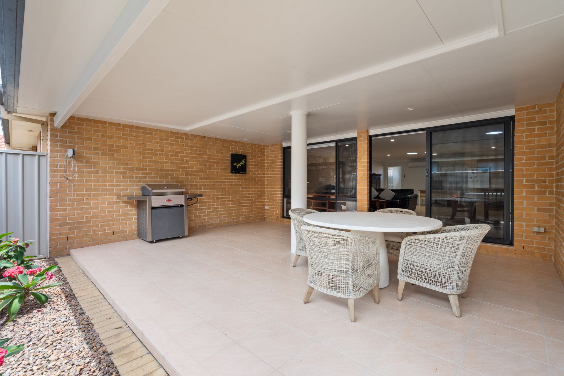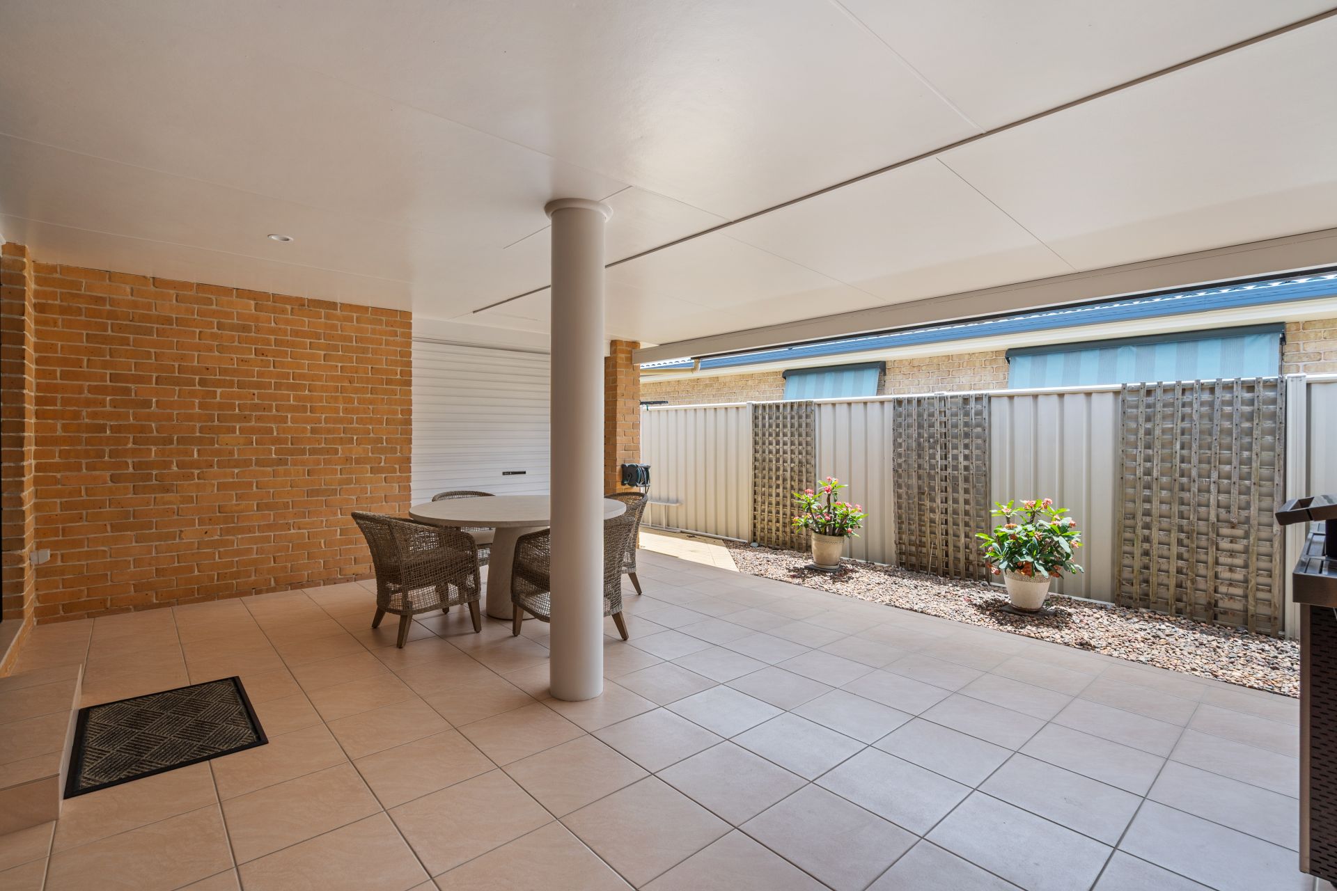** Covered alfresco entertaining overlooking low maintenance yard