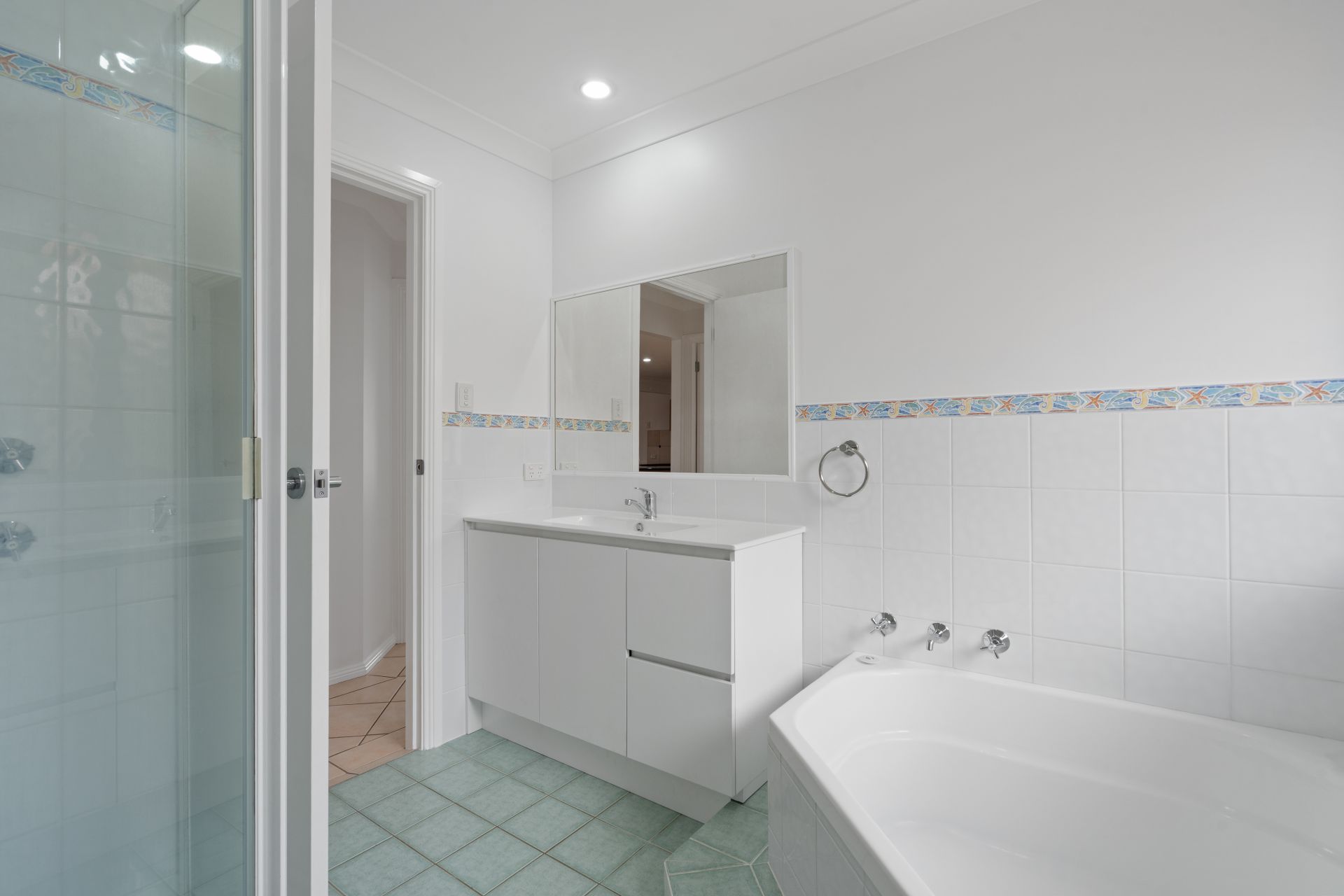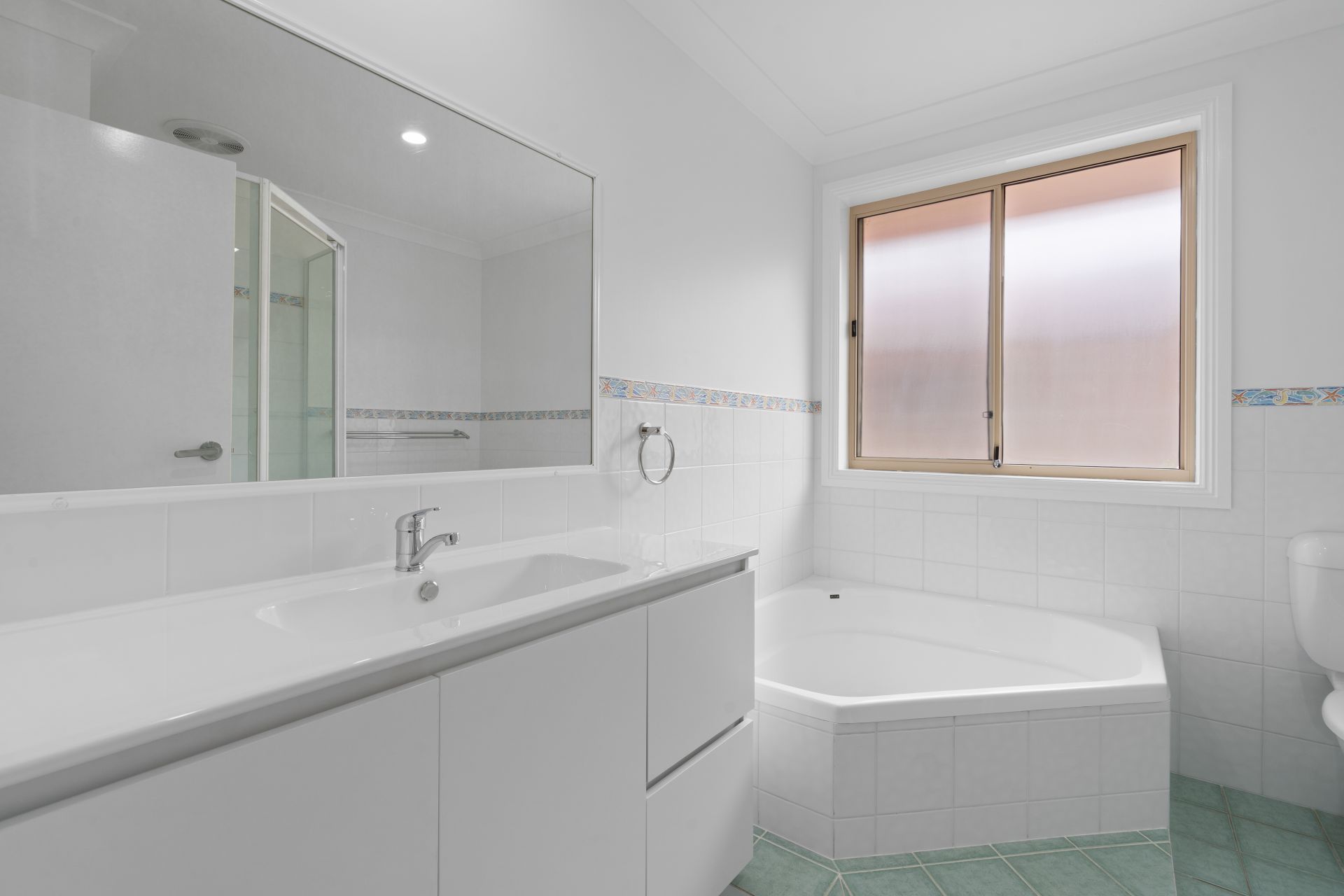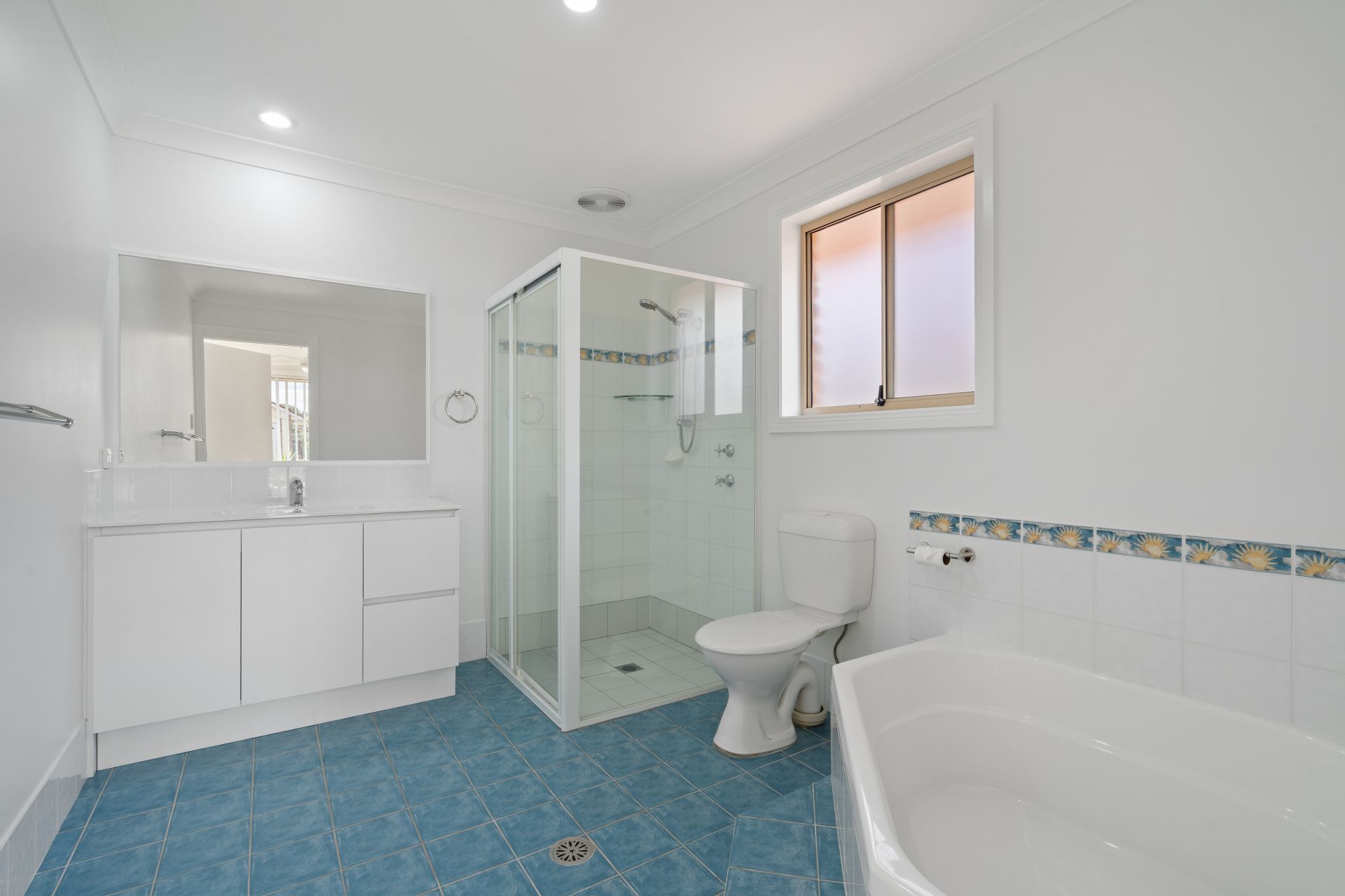 The master bedroom is set privately at the front of the home and features a built-in wardrobe and a generous ensuite with a large corner bath. The remaining bedrooms are all fitted with built-in wardrobes and are serviced by a spacious main bathroom, also with a corner bath, ideal for families.