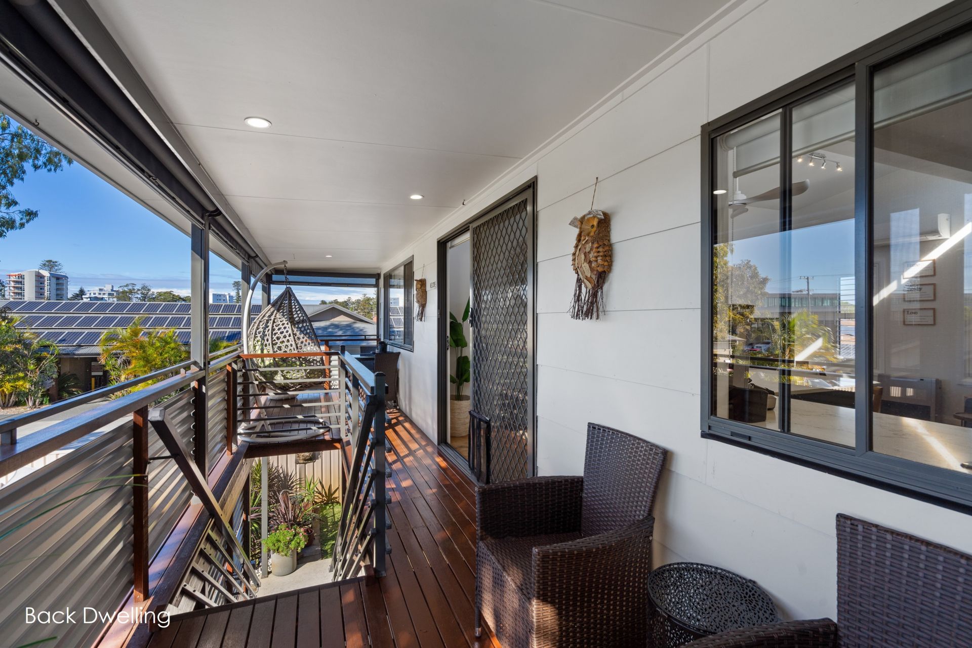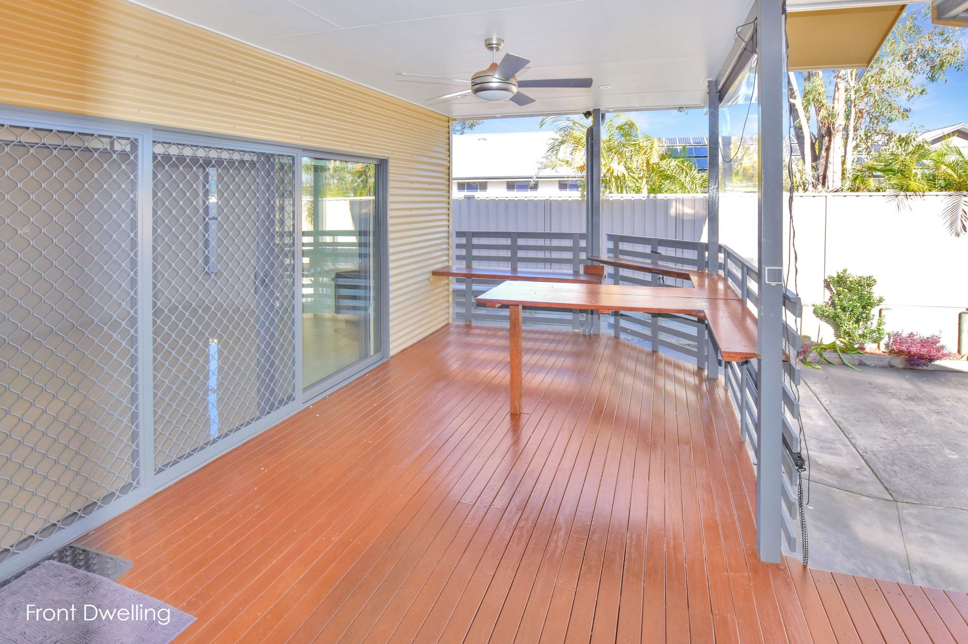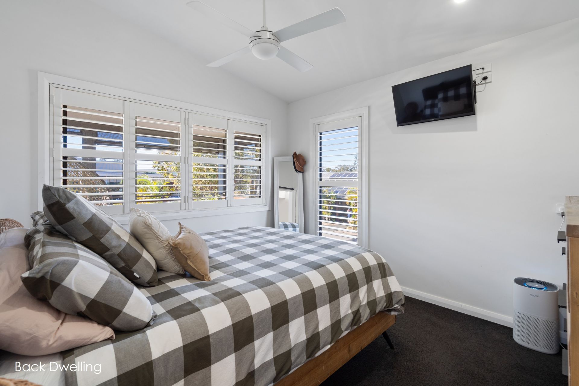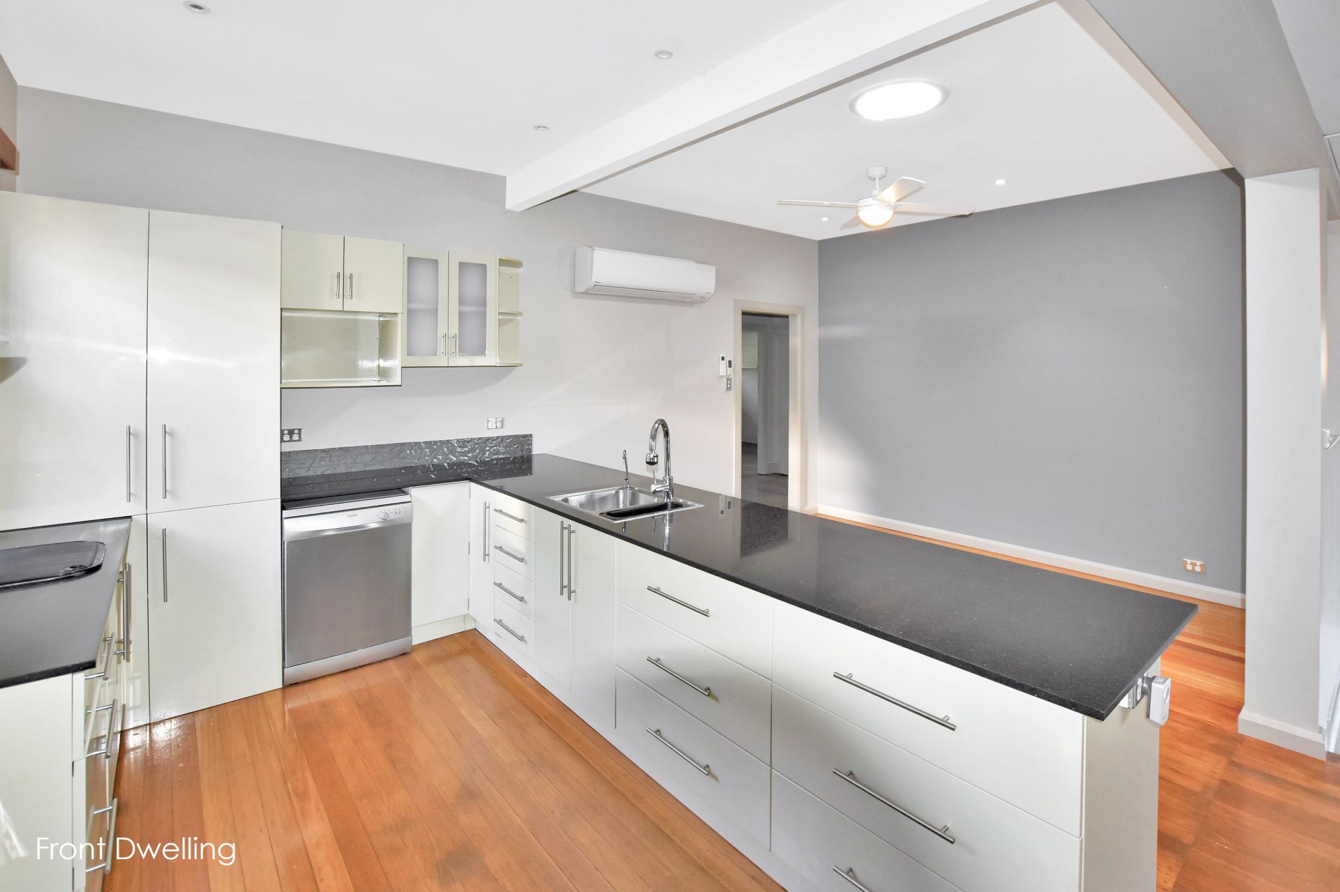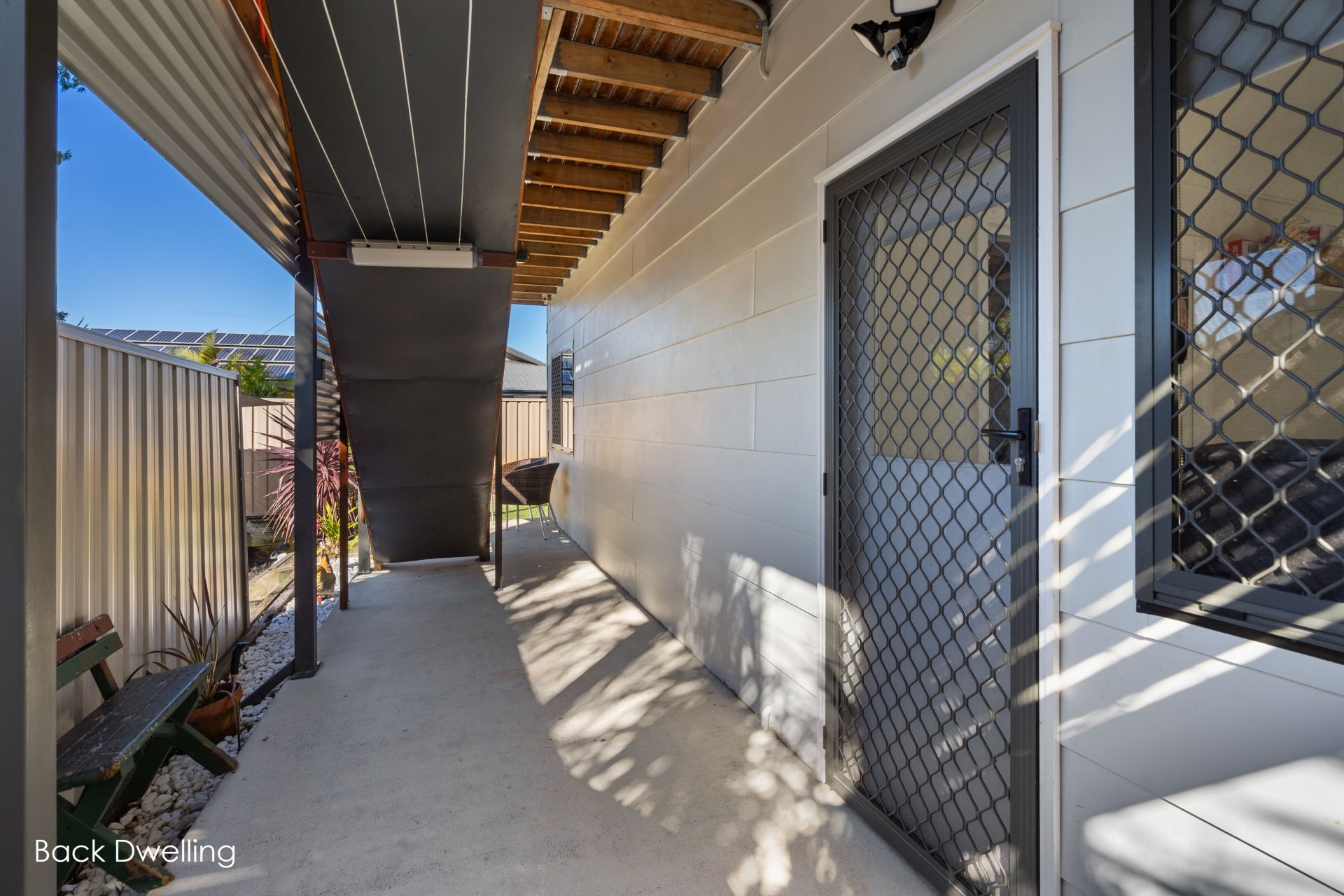 The front dwelling is bright, spacious and well designed for comfortable family living. It features fours generous bedrooms, three with built-in wardrobes, and a large open-plan living and dining area with ceiling fans, reverse-cycle air conditioning and a cosy fireplace. The modern kitchen is well-equipped with stone benchtops, a dishwasher and ample storage. A large deck at the rear offers a great space for outdoor entertaining, and the carport provides covered off-street parking.
