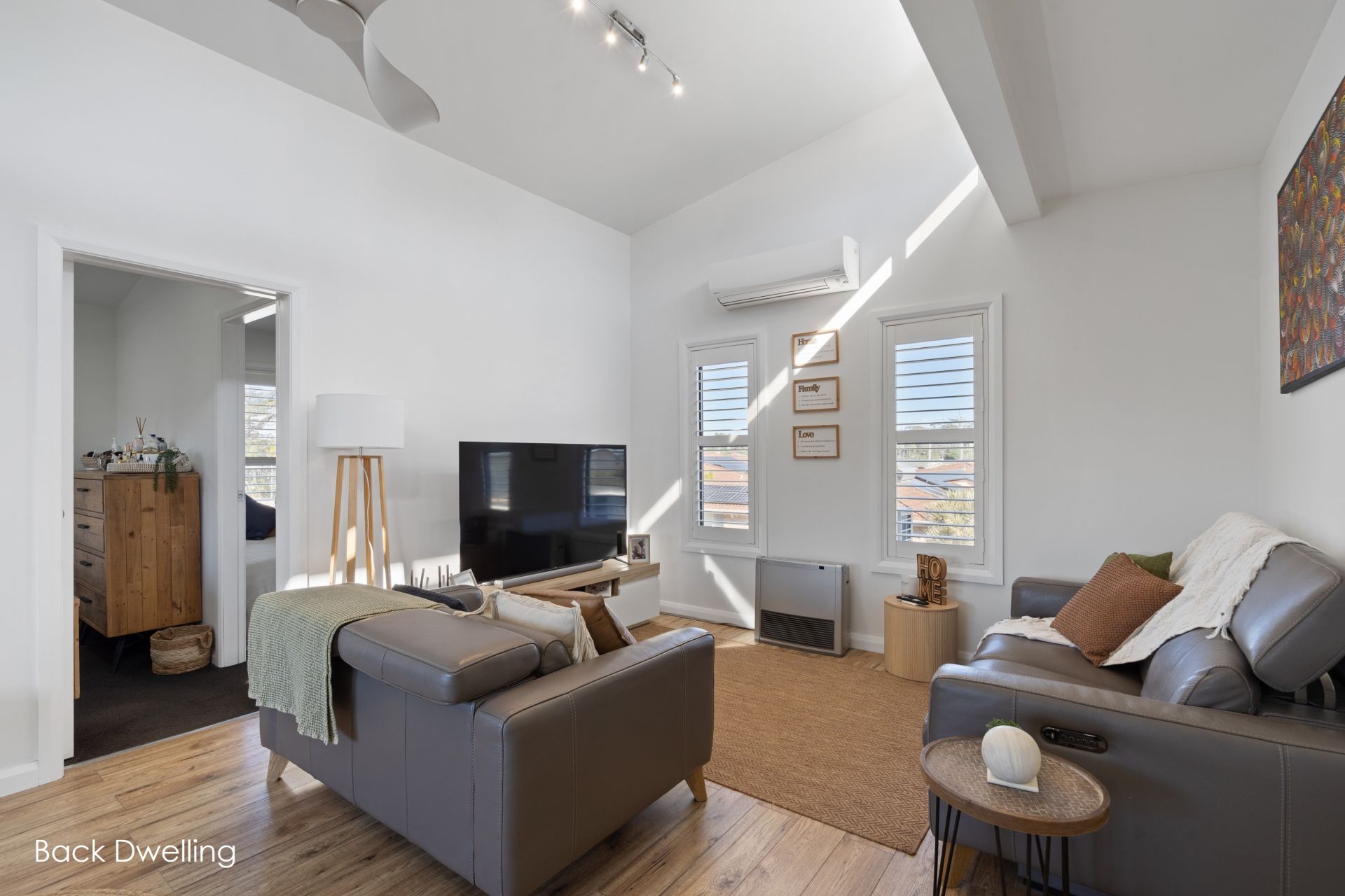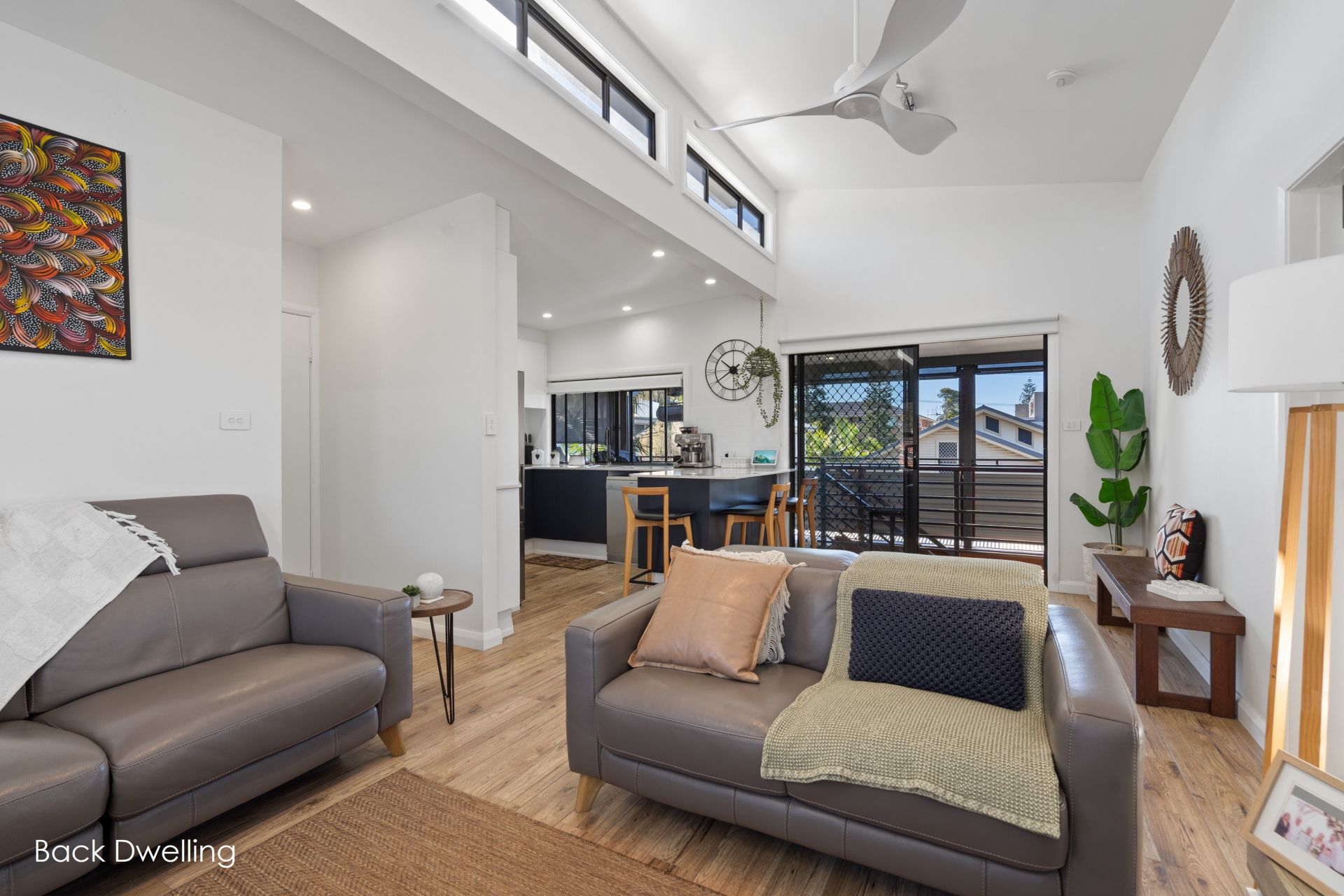 ** Rear dwelling spans two levels with open-plan living, stylish kitchen & raked ceilings