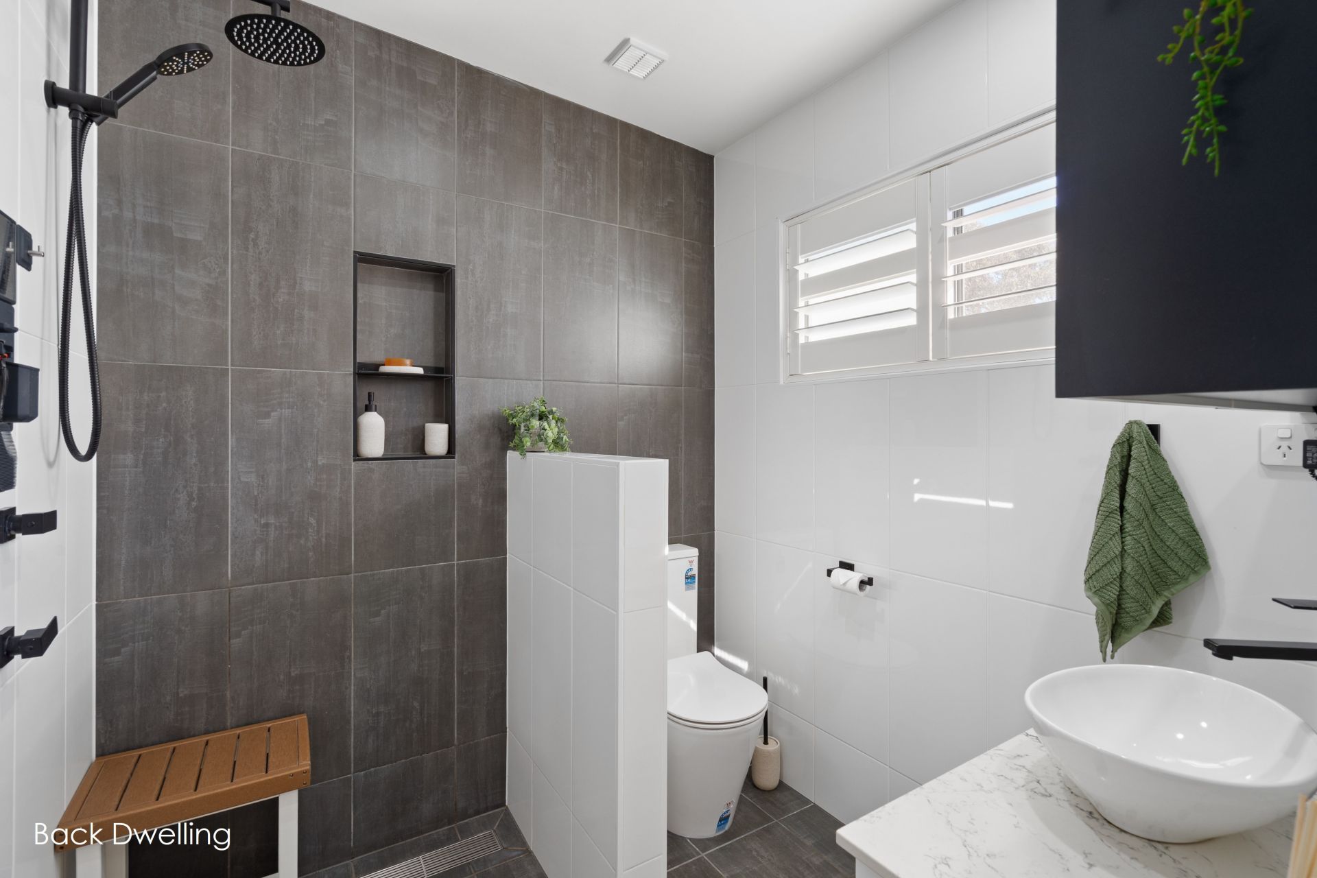 The second dwelling is accessed by convenient rear lane access and offers a private, two-storey layout perfect for guests, extended family or rental income. Upstairs features open-plan living with raked ceilings and air conditioning, a sleek modern kitchen with stone benchtops and a dishwasher, plus two bedrooms and a bathroom. Downstairs you'll find a third bedroom with its own bathroom, and a large lock-up garage with internal access. Outside, a covered patio area, spa, and established gardens complete the picture.