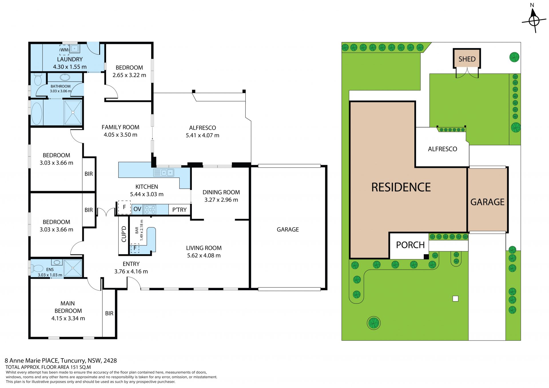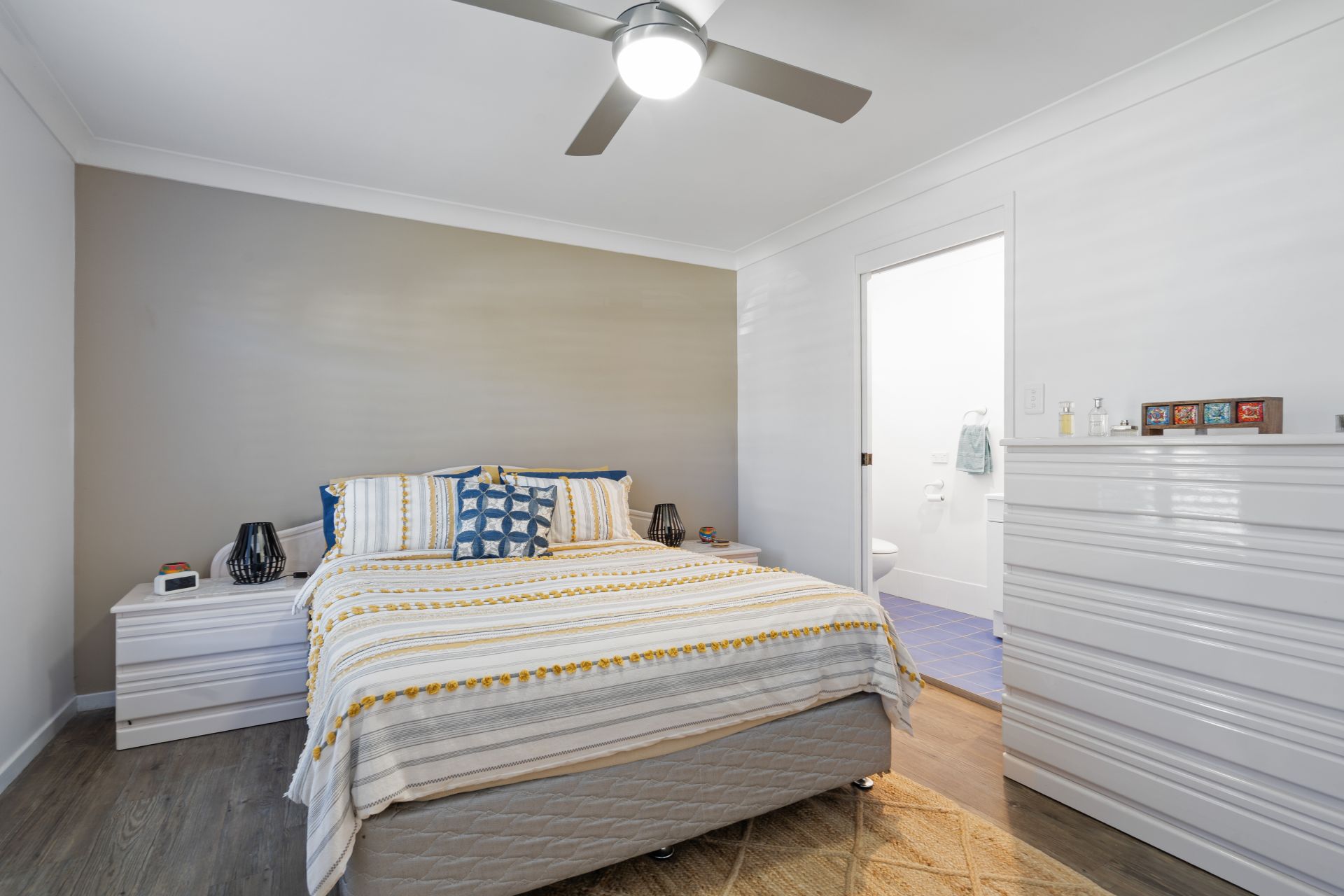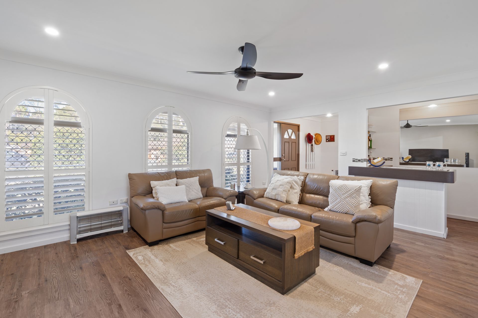 The master bedroom is thoughtfully positioned at the front of the home and features built-in wardrobes and a private ensuite. Bedrooms 2 and 3 also include built-ins, while all guests are serviced by a tidy three-way main bathroom. A large laundry with ample storage and external access further enhances the home's functionality.