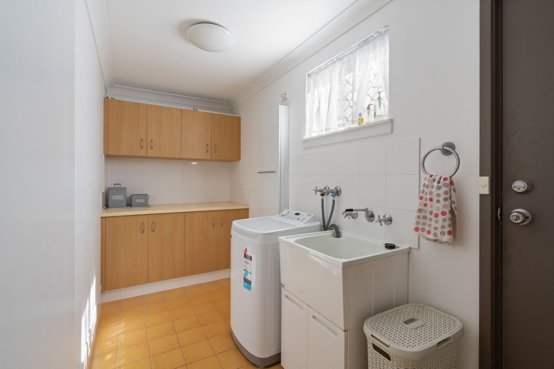** Single auto garage with drive-through to yard; generous internal laundry