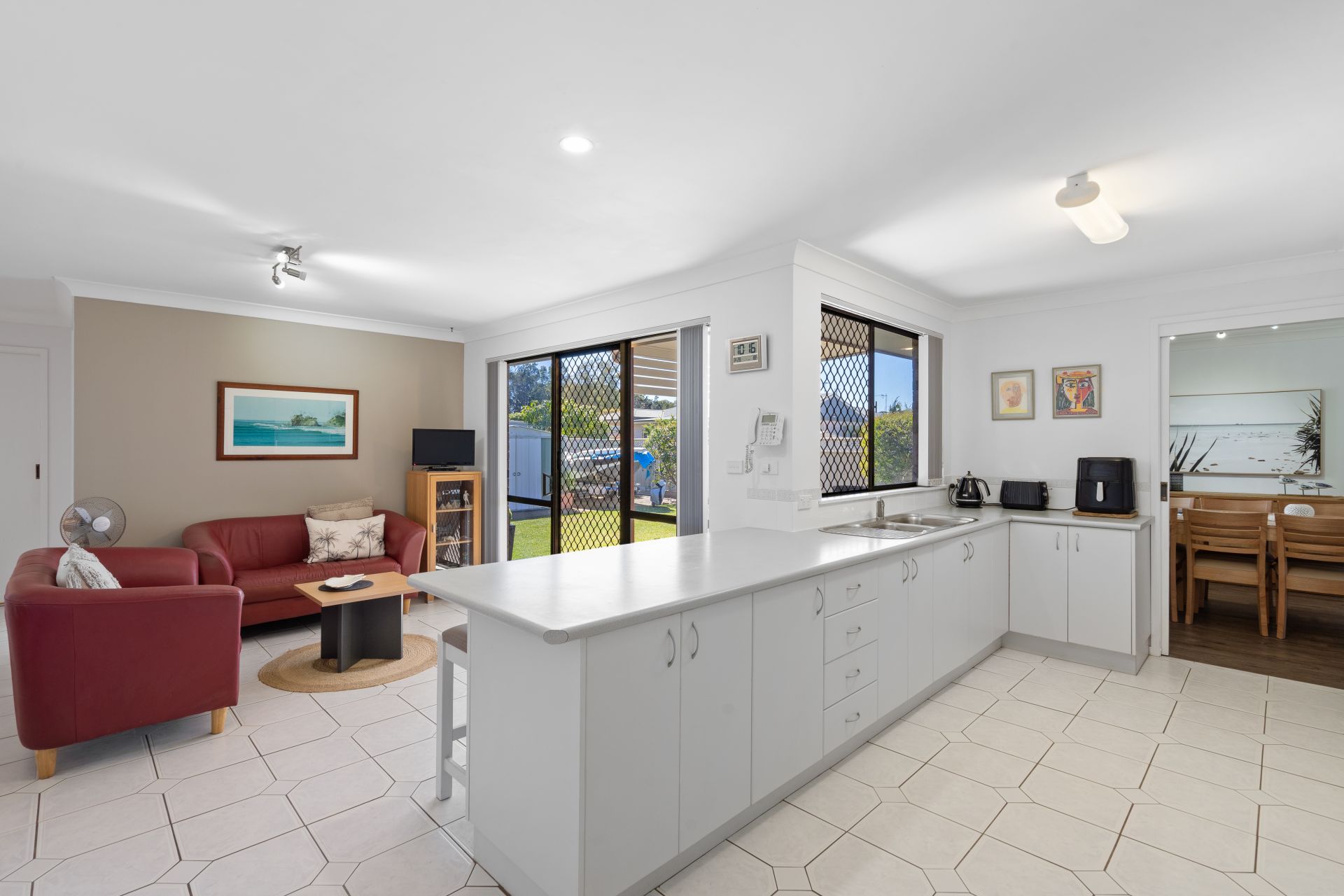 Additional features include a single automatic garage with drive-through access to the backyard, ceiling fans throughout, and the added appeal of being within a level walk to Tuncurry's shops, services, transport and pristine beaches.