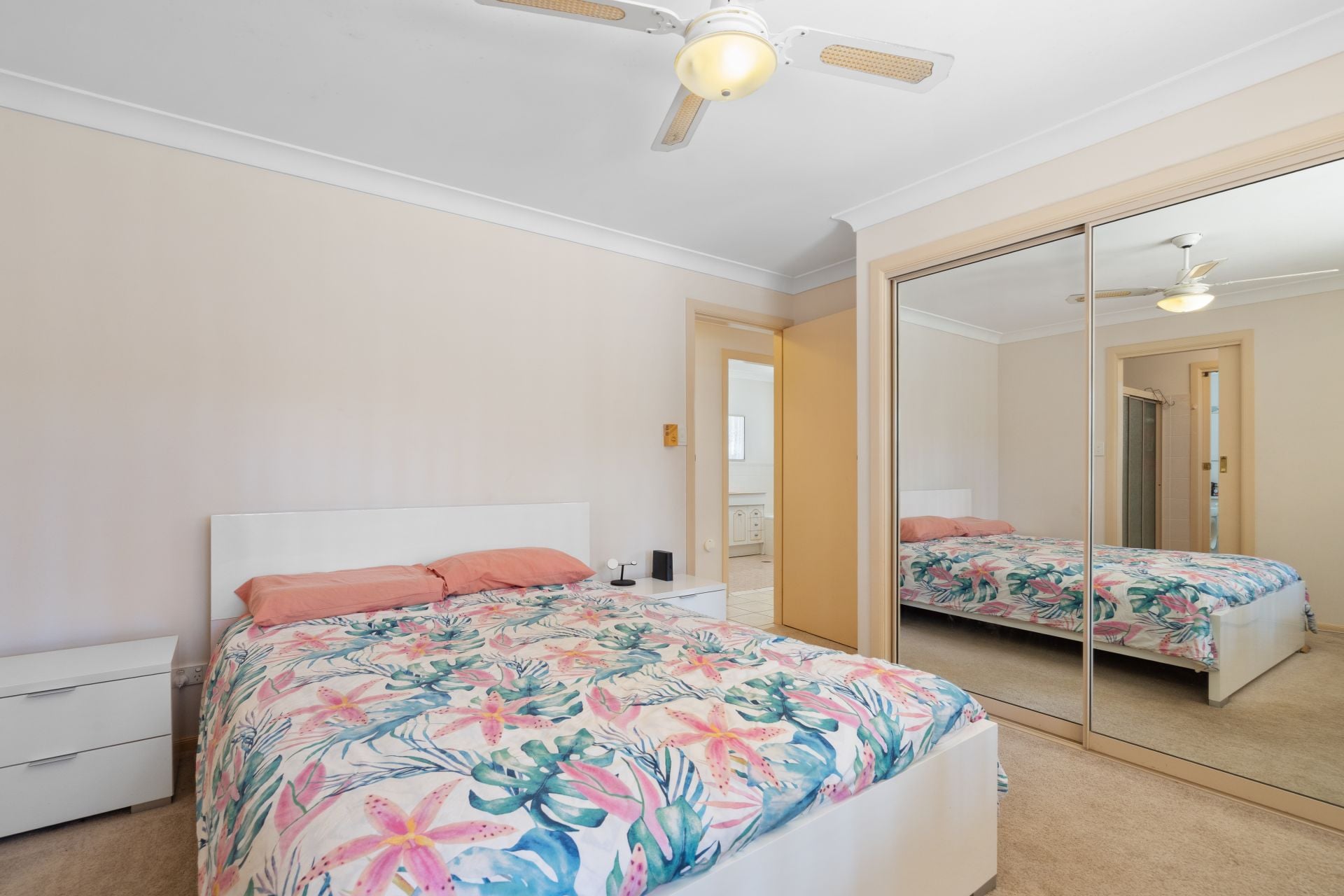 ** Master bedroom with ensuite; mirrored built-in wardrobes throughout