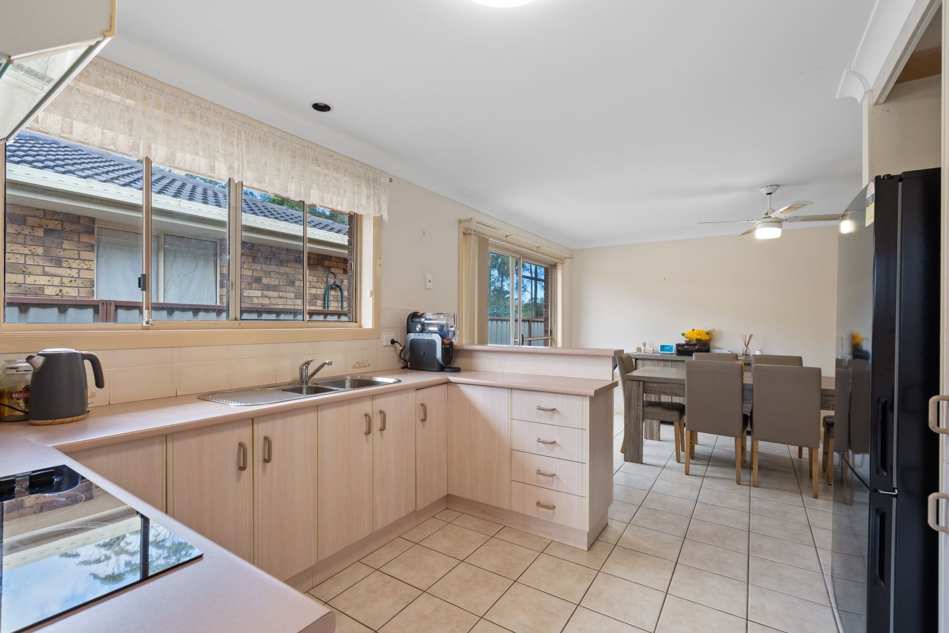 The original yet well maintained kitchen is both functional and generous, featuring an electric cooktop, wall oven with separate grill, excellent storage options and ample bench space including a breakfast bar, ideal for casual meals or entertaining guests.