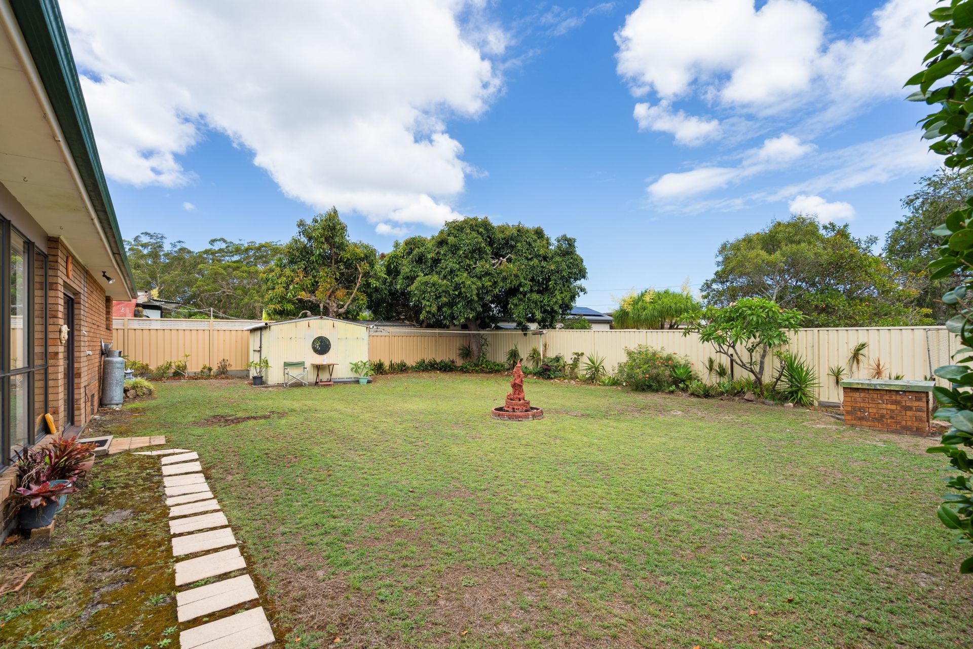 ** Large, level rear yard with garden shed and excellent scope to add value