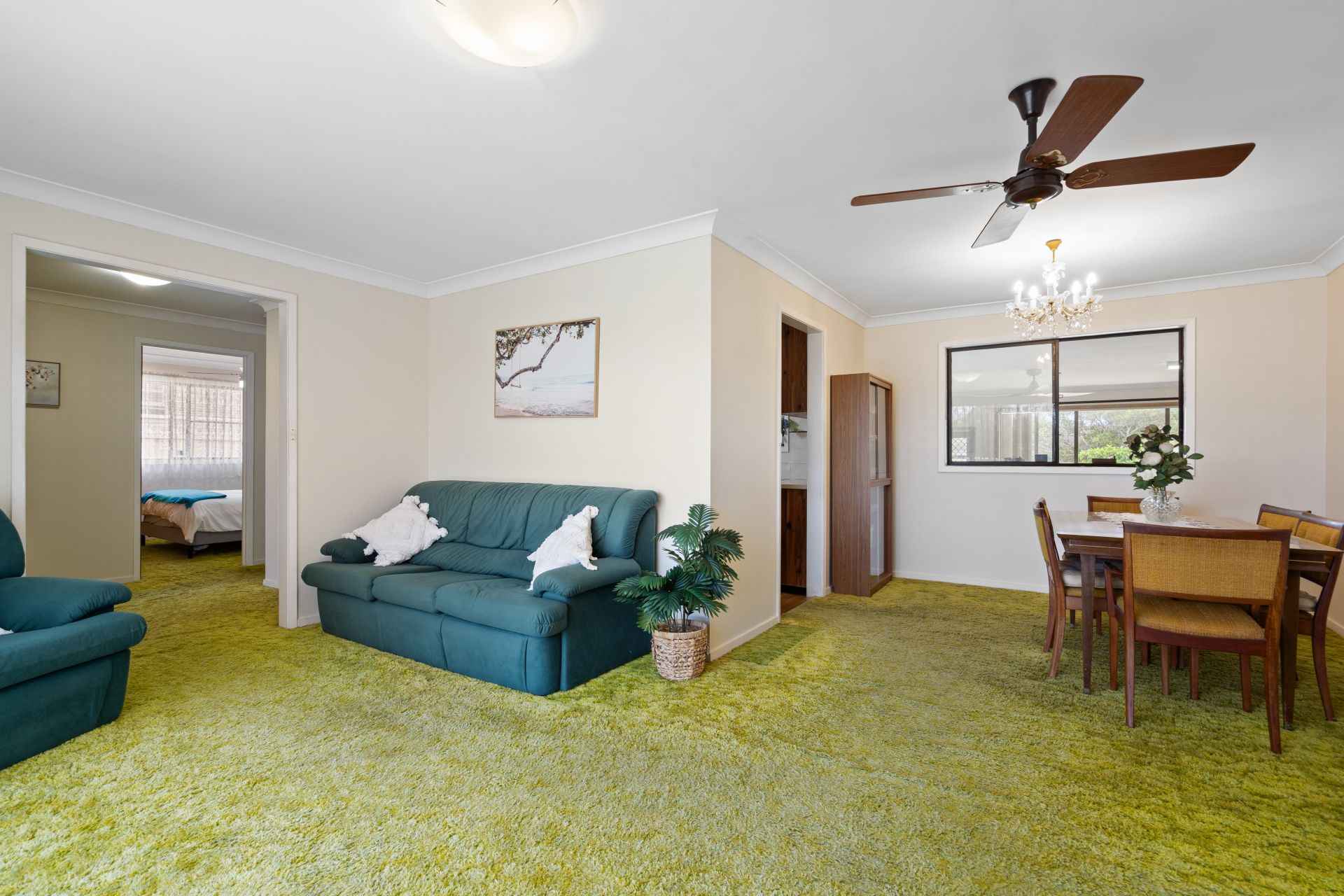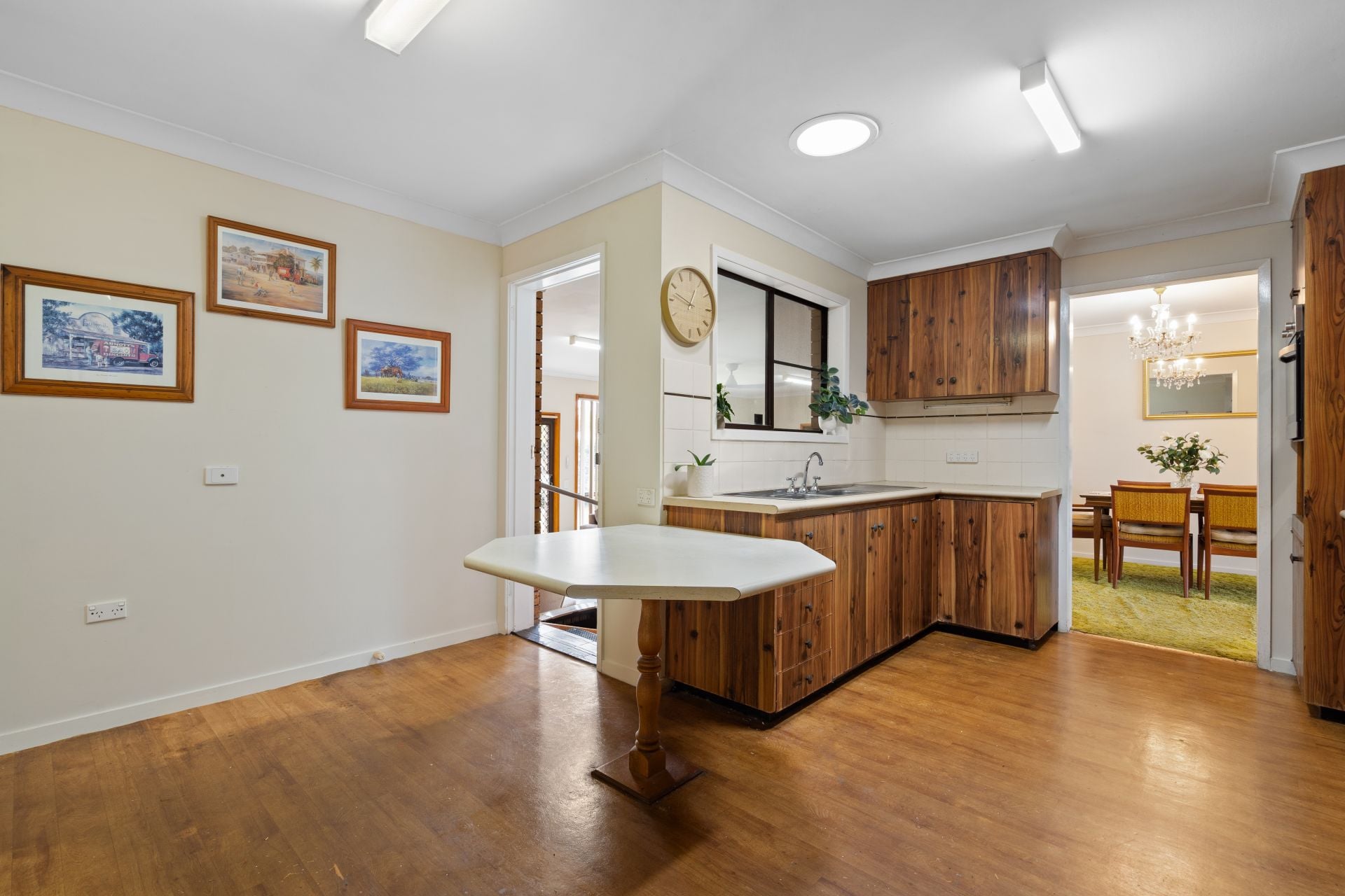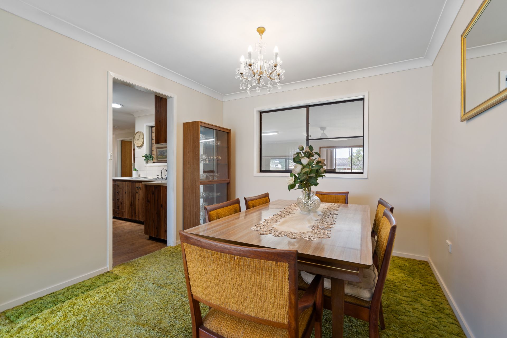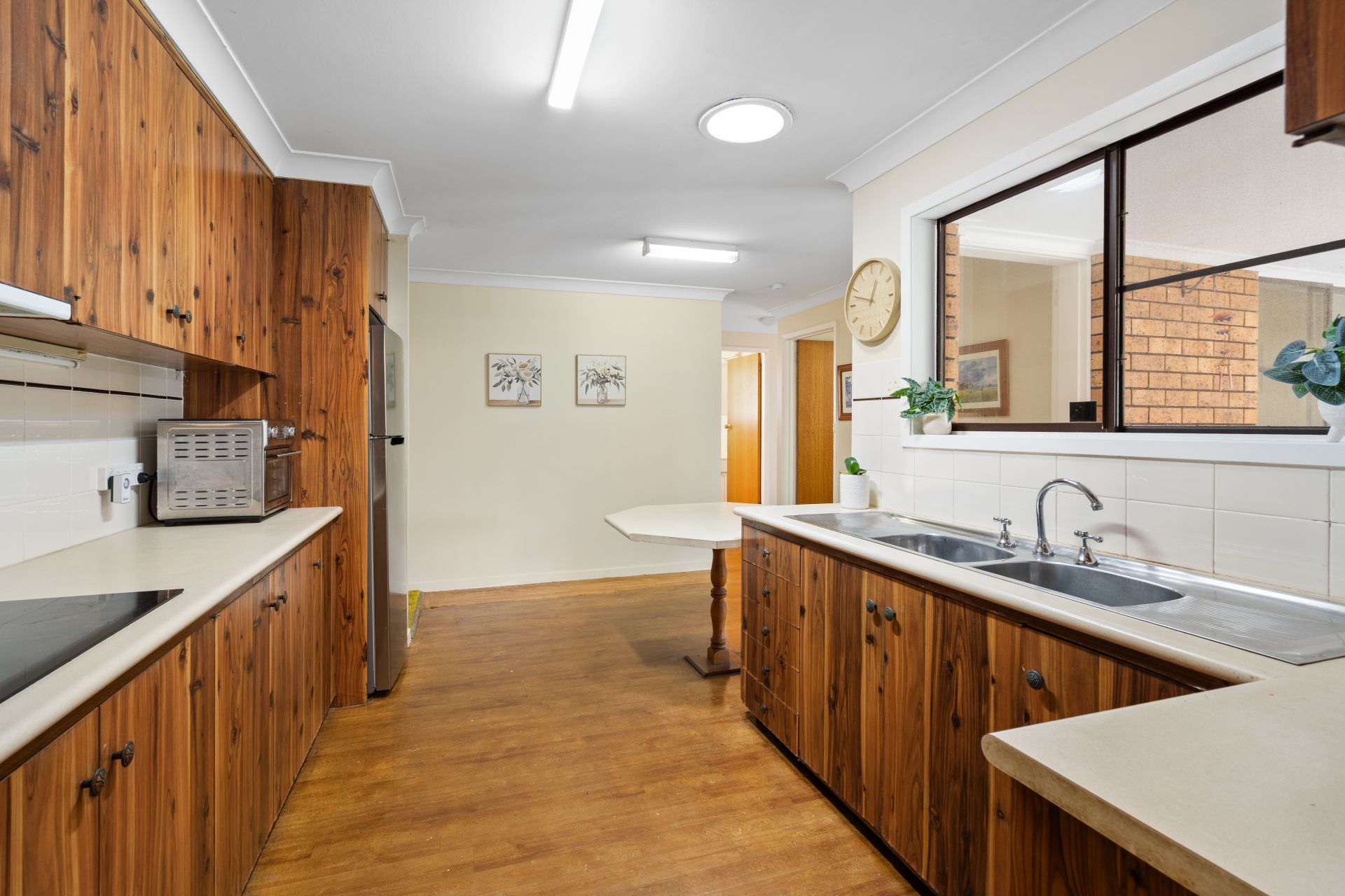 Upon entry, you are welcomed into an open plan lounge and dining area that provides a comfortable and practical living space. This flows through to the original kitchen, which is well maintained and equipped with an electric cooktop and wall oven. Ample storage options and generous bench space, including a dining breakfast bar, ensure the kitchen comfortably services the home.
