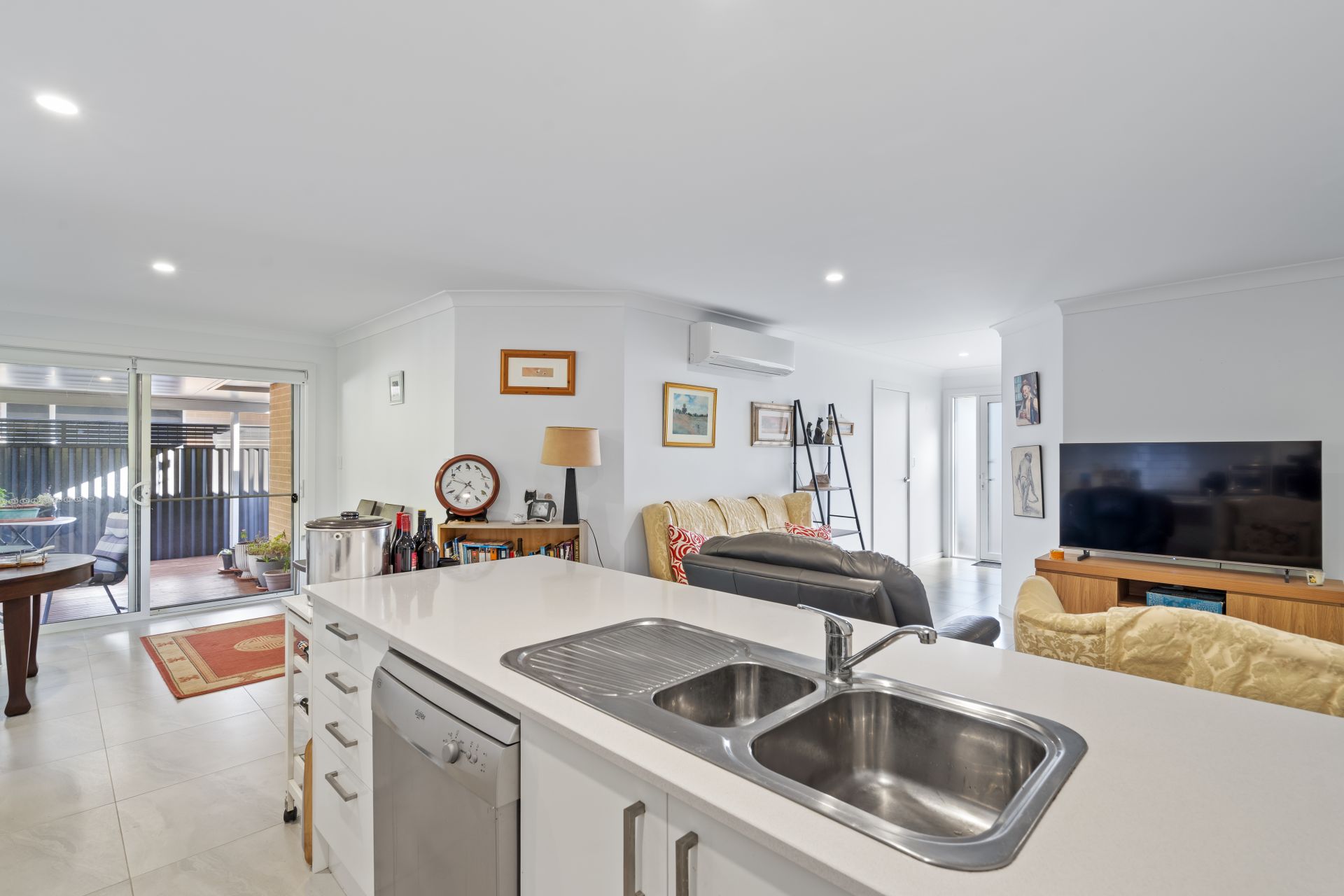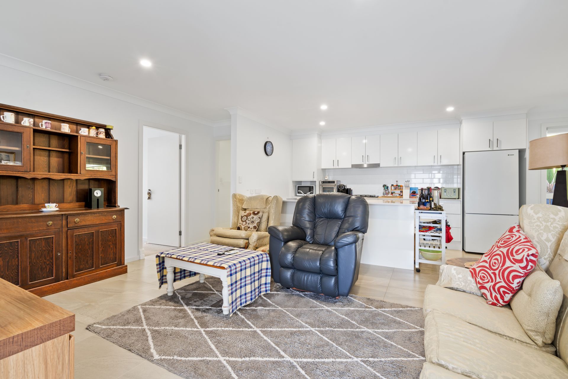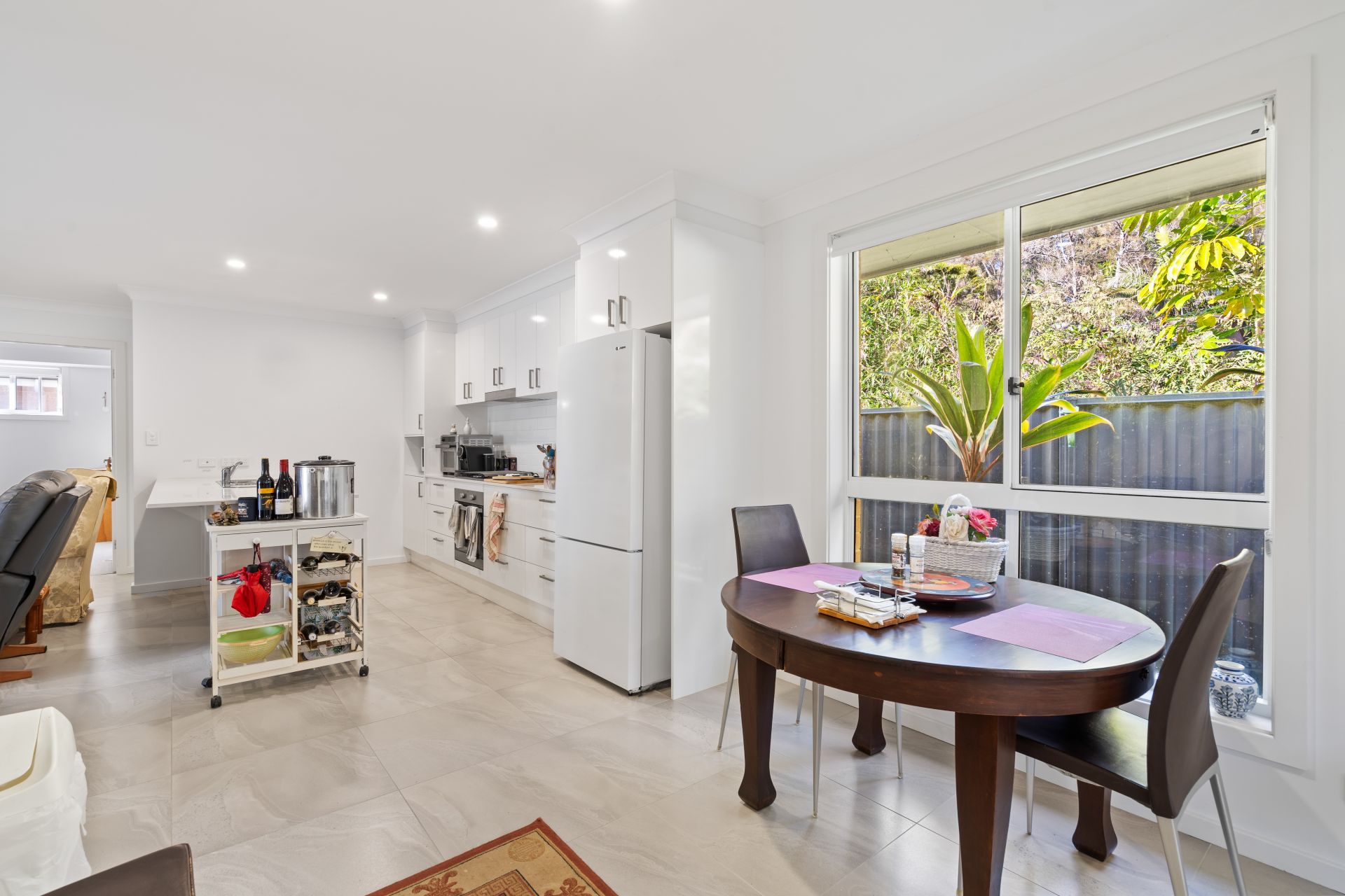 ** Spacious open-plan living and dining area; large kitchen with stone benchtops
