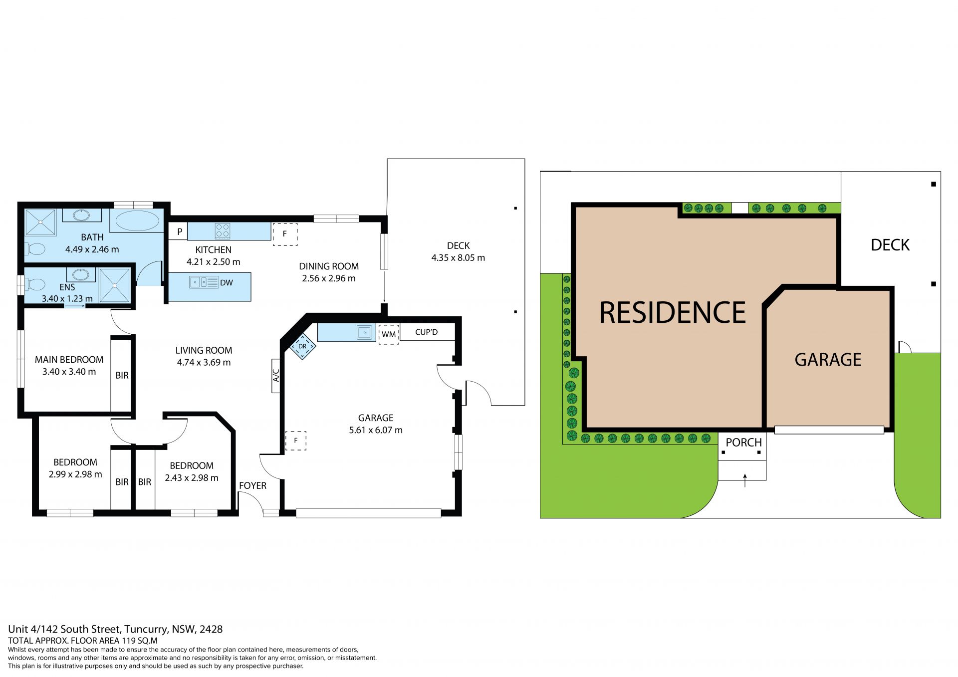 ** Split system A/C & ceiling fans throughout; double auto garage with internal access