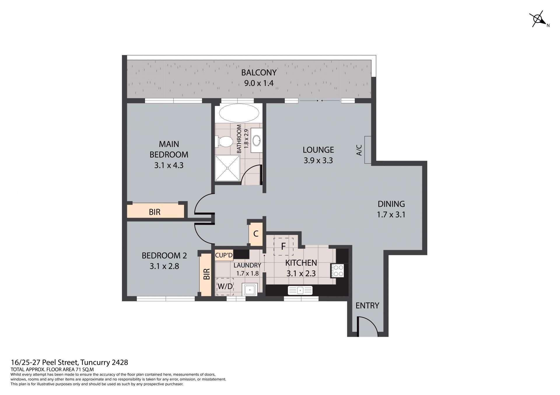 ** Open plan living, sizable balcony, tidy kitchen & internal laundry