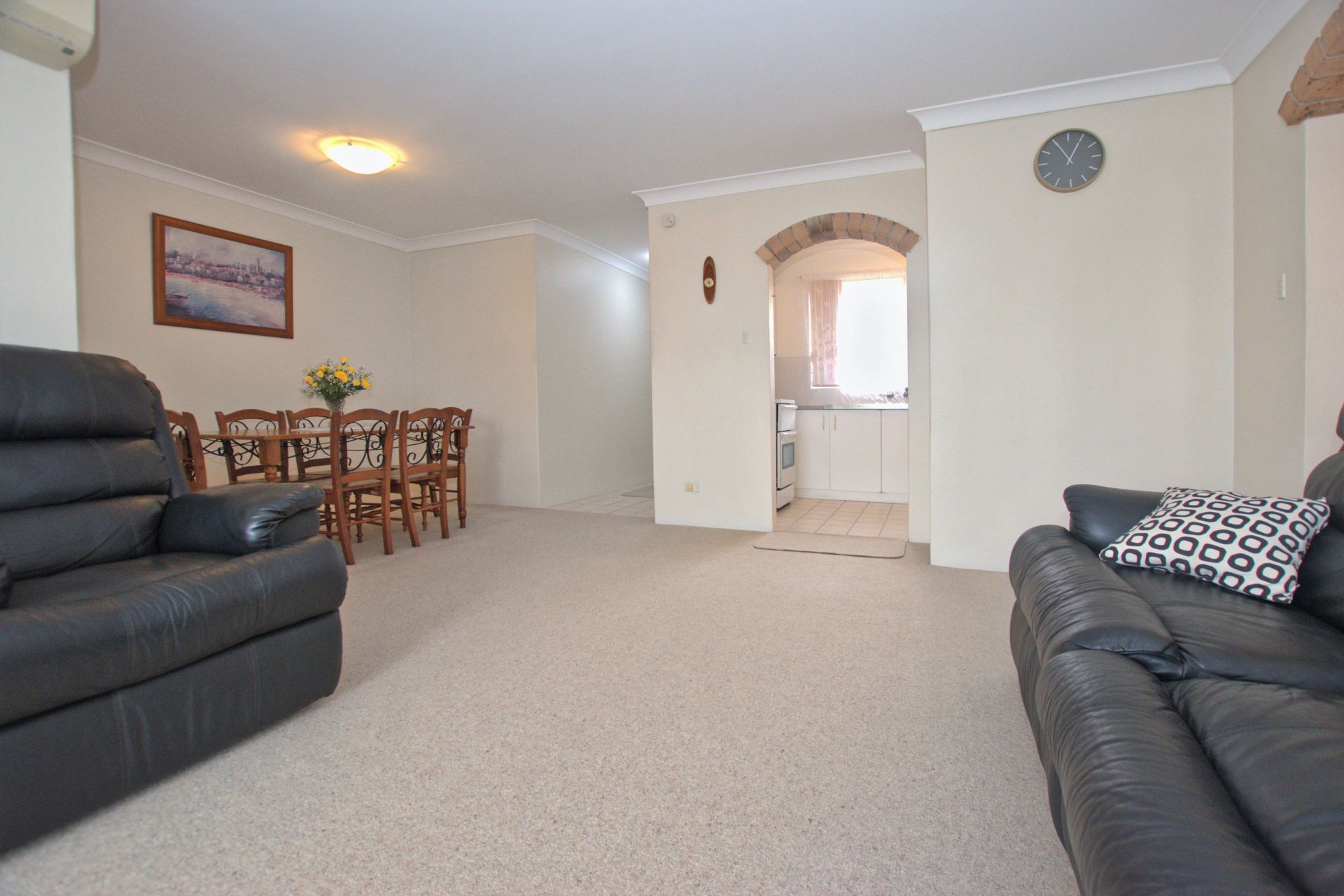 Upon entry to this tidy unit you are greeted by a good-sized open plan living area that is equipped with air-conditioning for seasonal comfort.