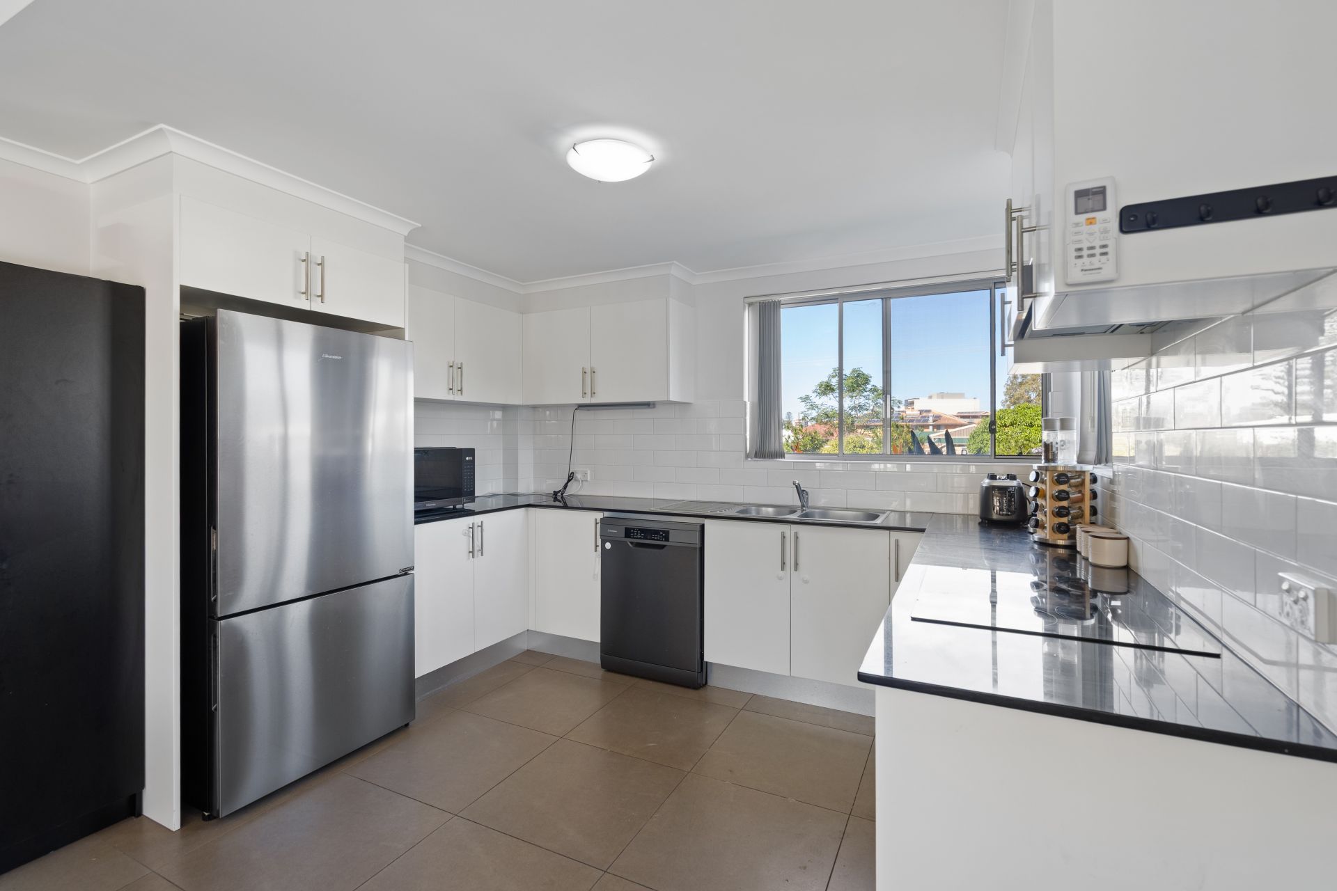 ** Contemporary kitchen with stone benchtops & quality appliances