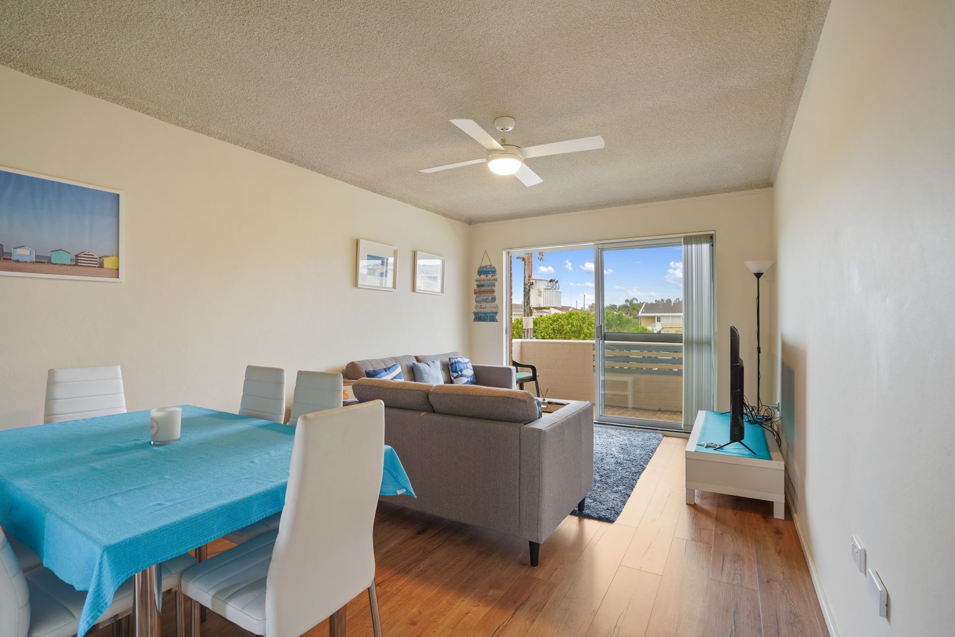 ** Open plan living with tidy kitchen, flow to front sizable balcony