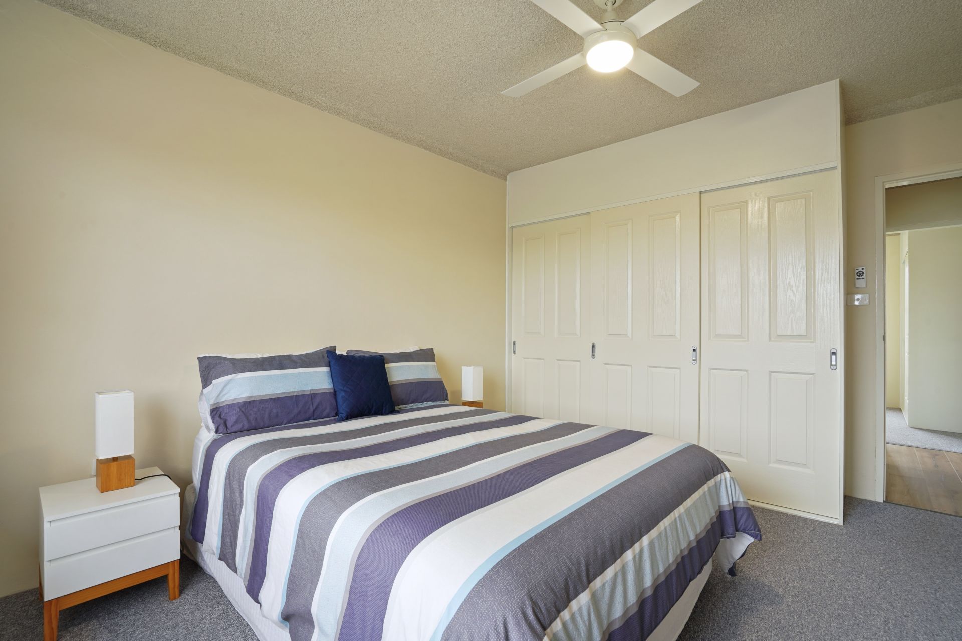 ** Two spacious bedrooms with built-in wardrobes; fans throughout